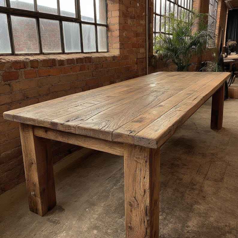 โต๊ะอาหารไม้จริงทรงสี่เหลี่ยมทันสมัยพร้อมขาเหล็กปรับระดับได้ เป็นมิตรกับสิ่งแวดล้อม ประกอบสำเร็จสำหรับใช้ในบ้านและกลางแจ้ง