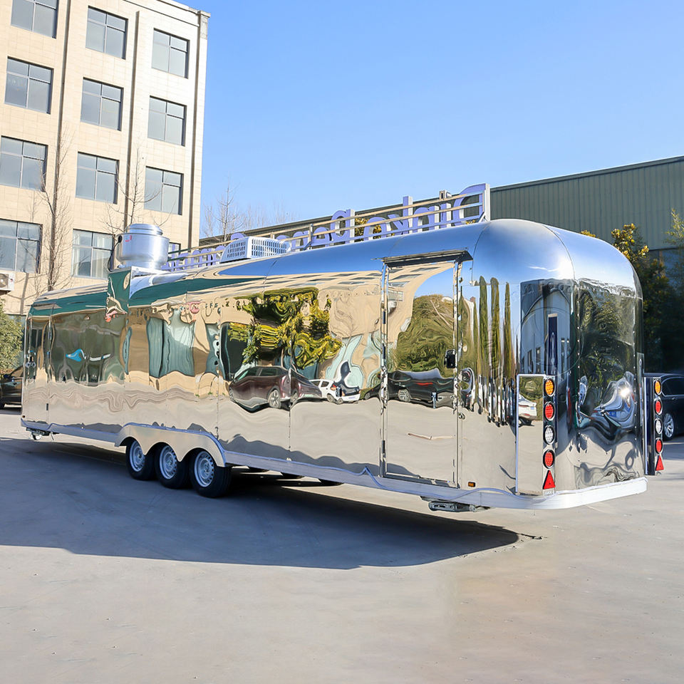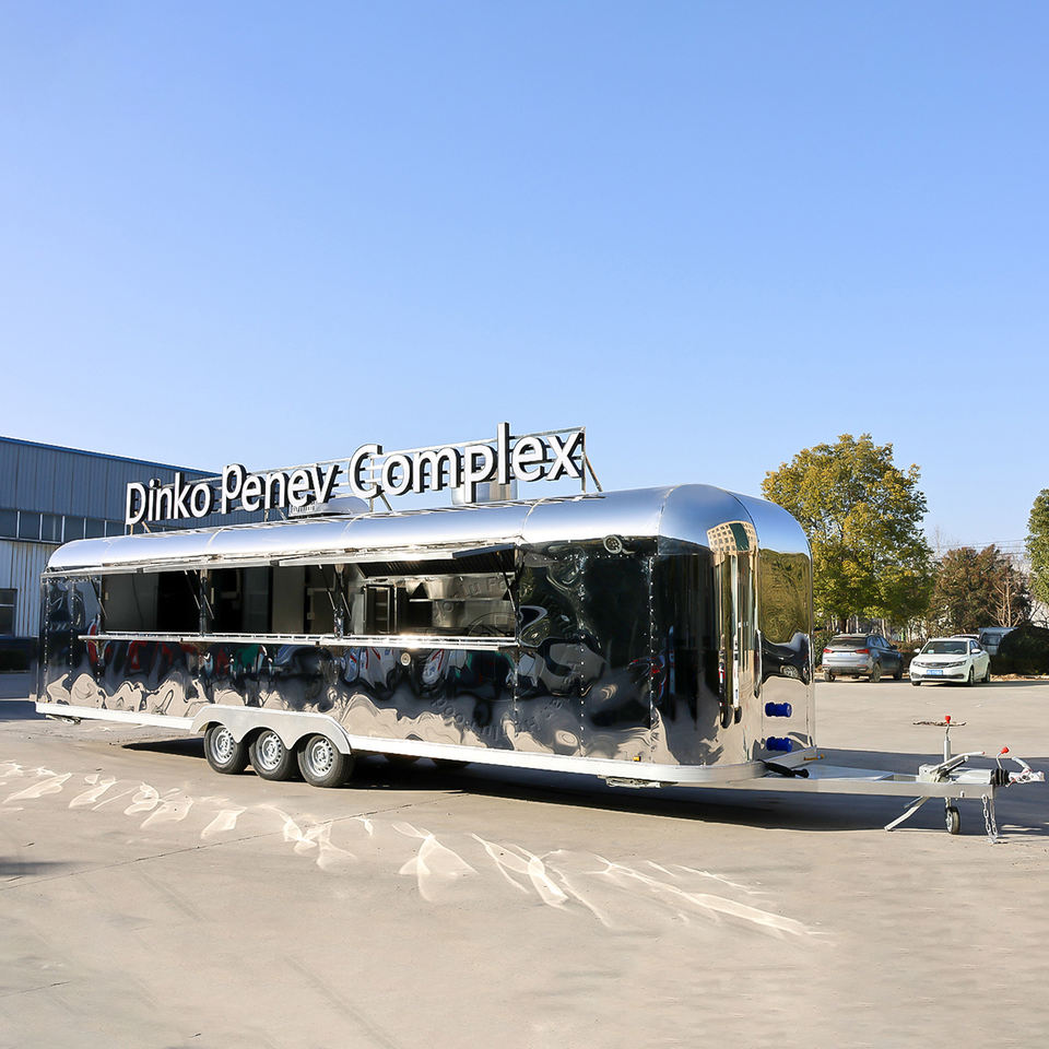 รถพ่วงขายพิซซ่าเคลื่อนที่สแตนเลสสั่งทำพิเศษ ขนาด 5 เมตร พร้อมอุปกรณ์ครัวครบครัน ป้องกันสนิม ใช้งานได้ทั้งในร่มและกลางแจ้ง
