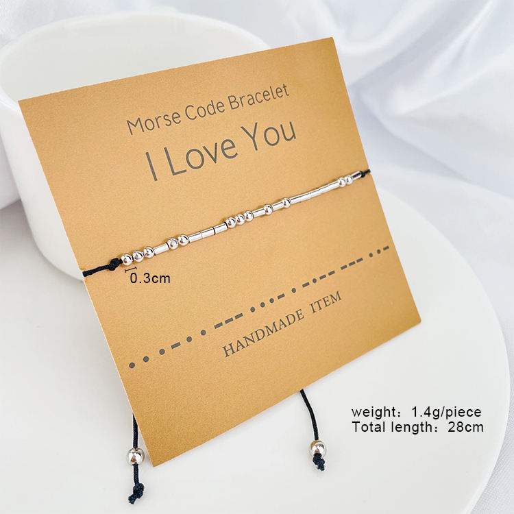 สร้อยข้อมือสแตนเลสสตีลแบบกำหนดเอง ลูกปัดรหัสมอร์ส ฉันรักคุณ เพื่อนซี้ สำหรับคู่รัก เครื่องประดับ