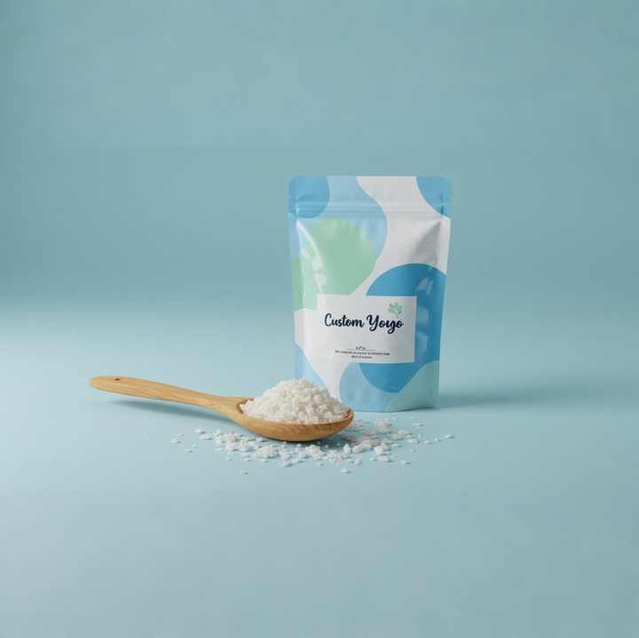 ถุงแบบตั้งได้สำหรับเกลืออาบน้ำ พิมพ์สีด้านแบบเต็มรูปแบบ ถุงตัวอย่างสครับขัดผิวสำหรับงานส่งเสริมการขาย