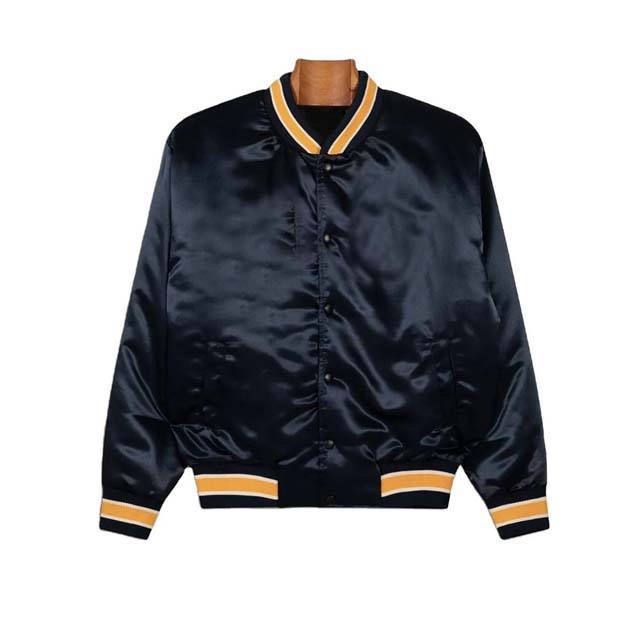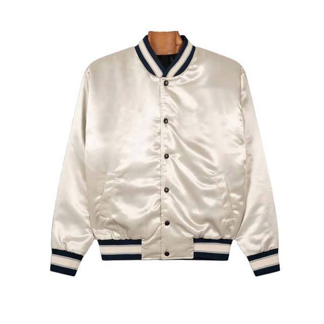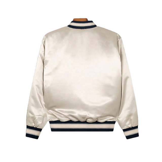 เสื้อแจ็คเก็ตเบสบอลแบบสั่งทำพิเศษสำหรับผู้ชาย แจ็คเก็ตเบสบอลผ้าซาตินสำหรับทีมกีฬาผู้ชาย แจ็คเก็ตผู้ชายแบบต่อผ้า