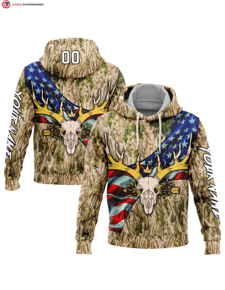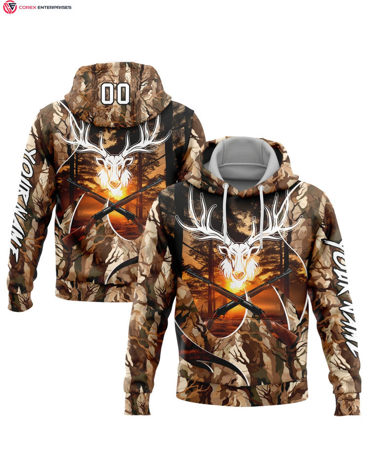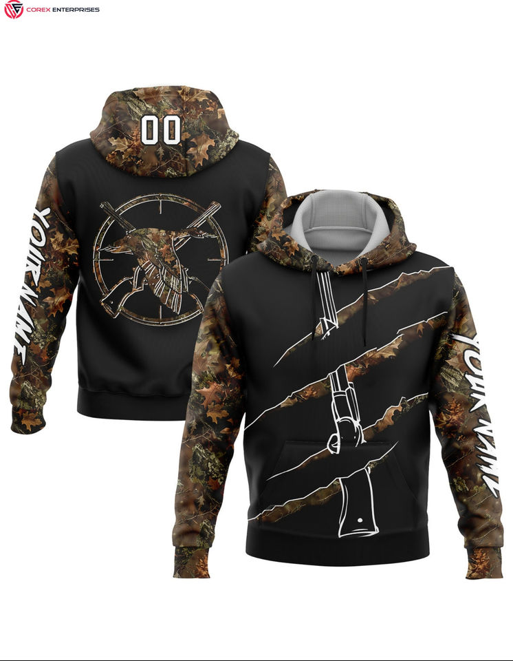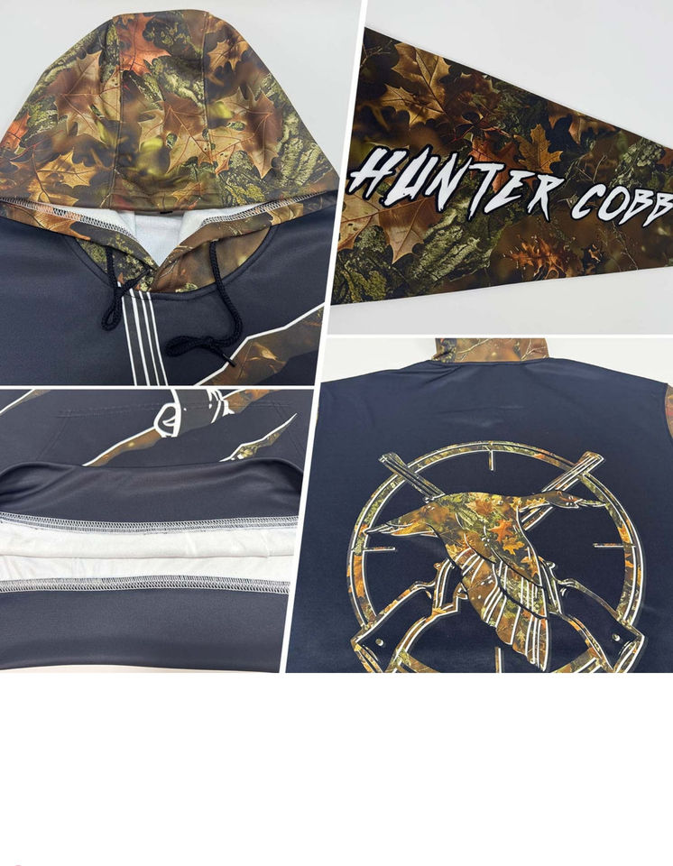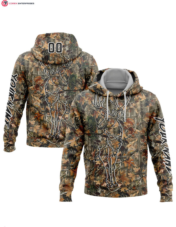 เสื้อฮู้ดกันหนาวแบบสวมหัวผ้าคอตตอน100% เย็บปักแบบกำหนดเองสีขาวดำทอง3D กวางกีฬาล่ากวางสำหรับฤดูหนาวมีฮู้ดติดโลโก้ด้านหน้า