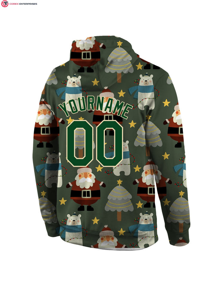 เสื้อกีฬาแบบสวมหัวมีฮู้ดเสื้อกีฬา3D คริสต์มาสสีเขียวสีเขียวระเหิดแบบกำหนดเอง