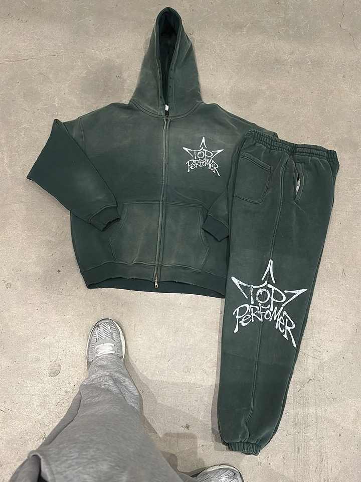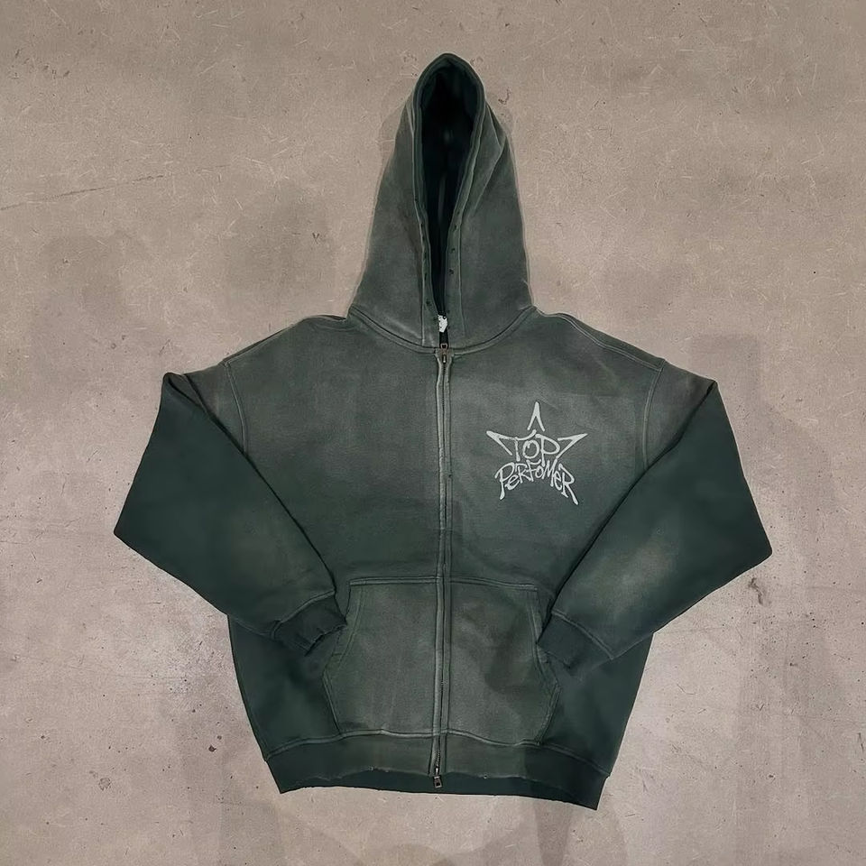 เสื้อฮู้ดดี้ผ้าฝรั่งเศสเนื้อหนักแบบซิปคู่ ซิปหน้า 2 ทาง ล้างสีแบบสโตนวอช สำหรับผู้ชาย สไตล์ลำลอง