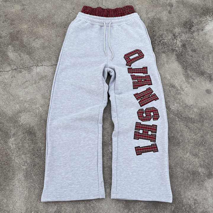 Custom Straight Leg Men's Casual Trousers Embroidered Fleece Jogger Track Pants Designer Cotton Stacked Double Waist Sweatpants