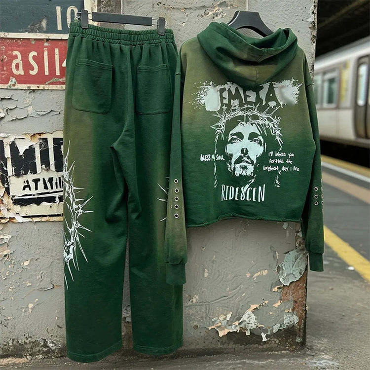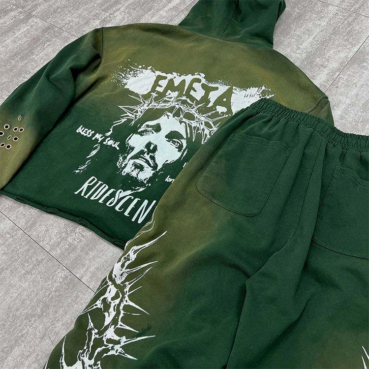 กางเกงวอร์มขาตรงแบบสั่งทำพิเศษ คุณภาพสูง ชุดกางเกงวอร์มทรงหลวมและเสื้อฮู้ด ชุดกีฬาผ้าเฟรนช์เทอร์รี่แบบซักแล้ว ชุดวอร์มผู้ชาย
