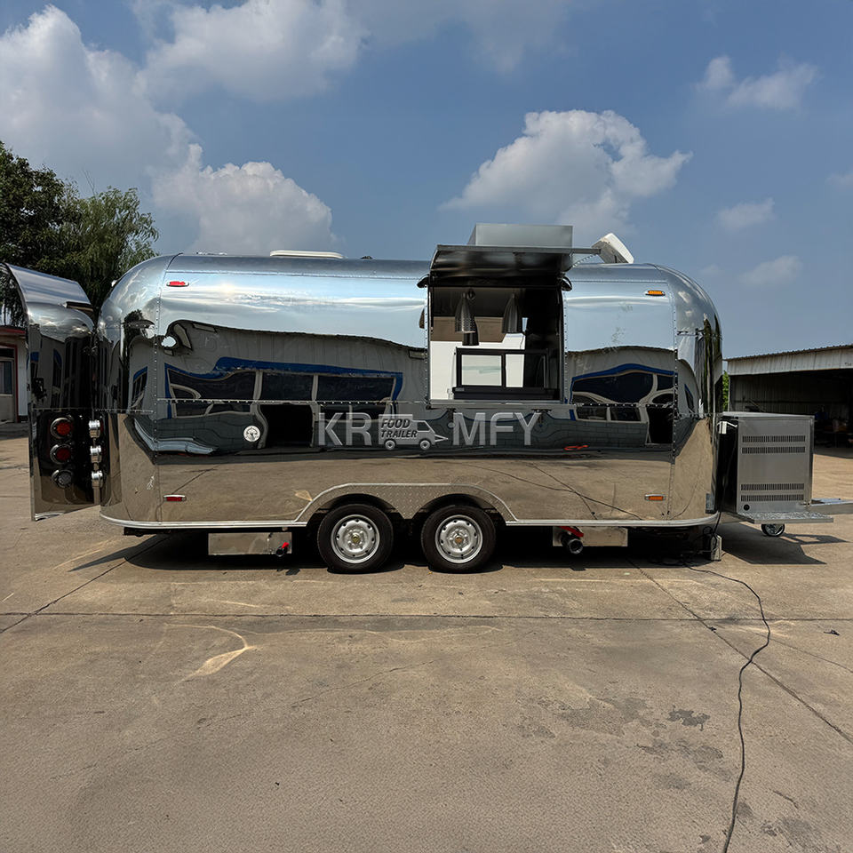 รถเข็นอาหารเคลื่อนที่พร้อมไฟ LED รถเทรลเลอร์ตามท้องถนนรถเข็นขายอาหารเคลื่อนที่สำหรับร้านอาหารมีอุปกรณ์ครบครัน
