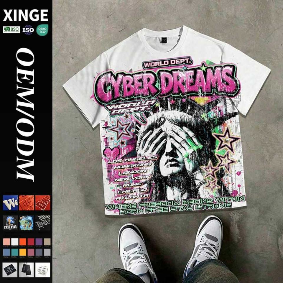 เสื้อยืดโอเวอร์ไซส์สไตล์ฮิปฮอปวินเทจแบบทำสีซีดขาดๆ ผ้าฝ้าย 100% พิมพ์ลาย DTG ทรงบ็อกซี่แบบครอป สำหรับทุกเพศ