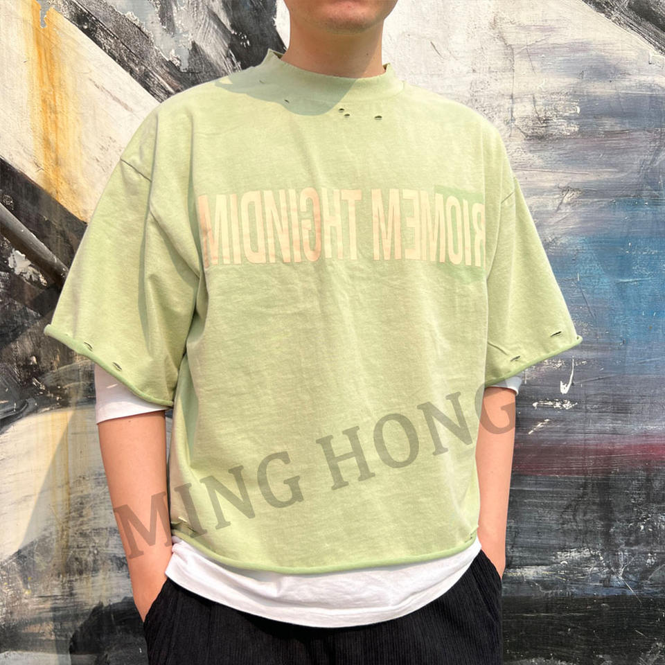 เสื้อยืดบ็อกซี่โอเวอร์ไซส์ผ้าคอตตอนแท้300 GSM ลายตัวอักษรสไตล์สตรีทแบบกำหนดได้เอง