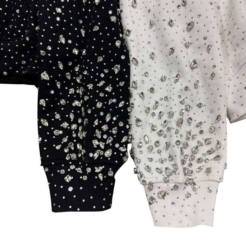 เสื้อฮู้ดดี้สตรีทแวร์คุณภาพสูง แบบซิป ประดับคริสตัล ทรงโอเวอร์ไซส์ ดีไซน์เนอร์ ผ้าฝ้ายฟลีซ เฟรนช์เทอร์รี่