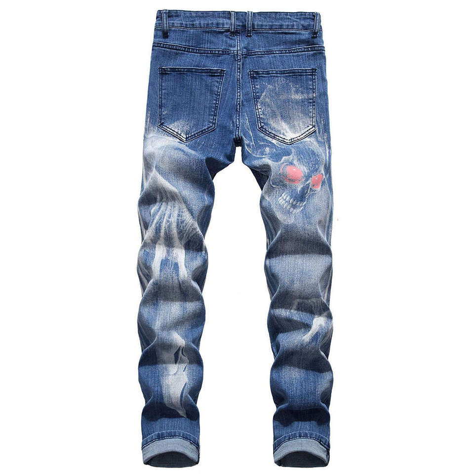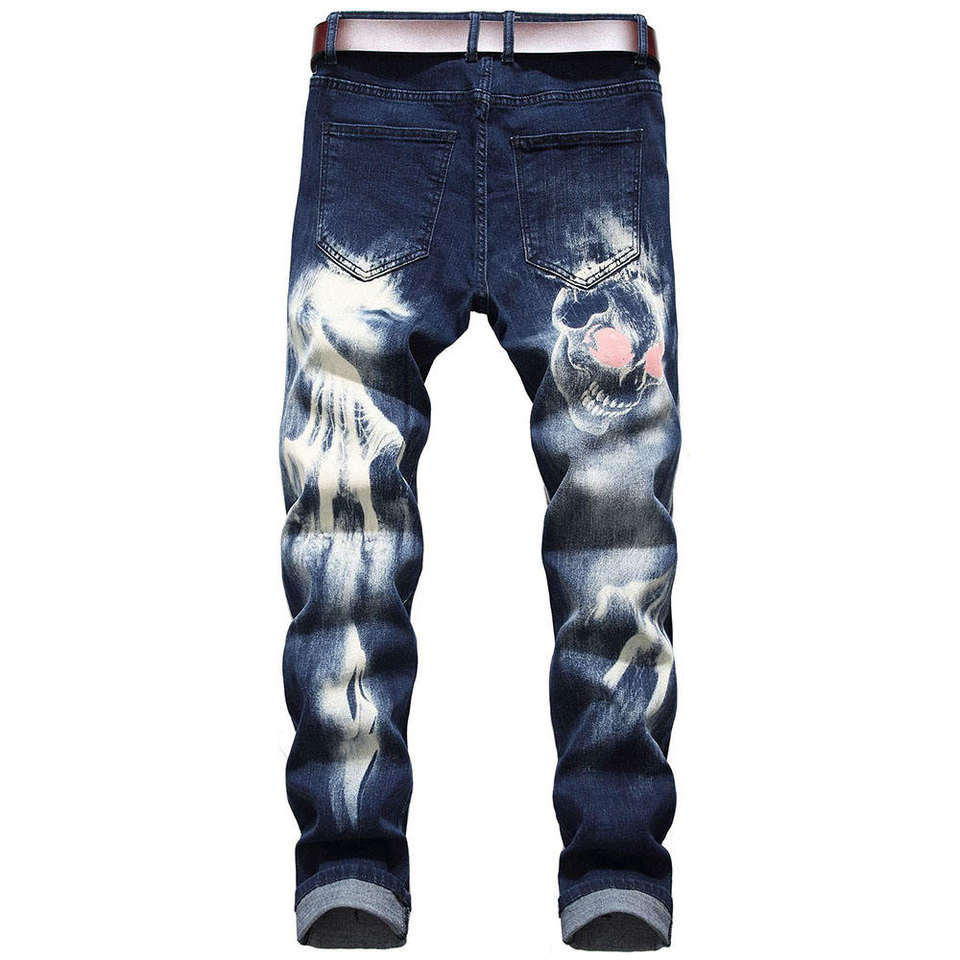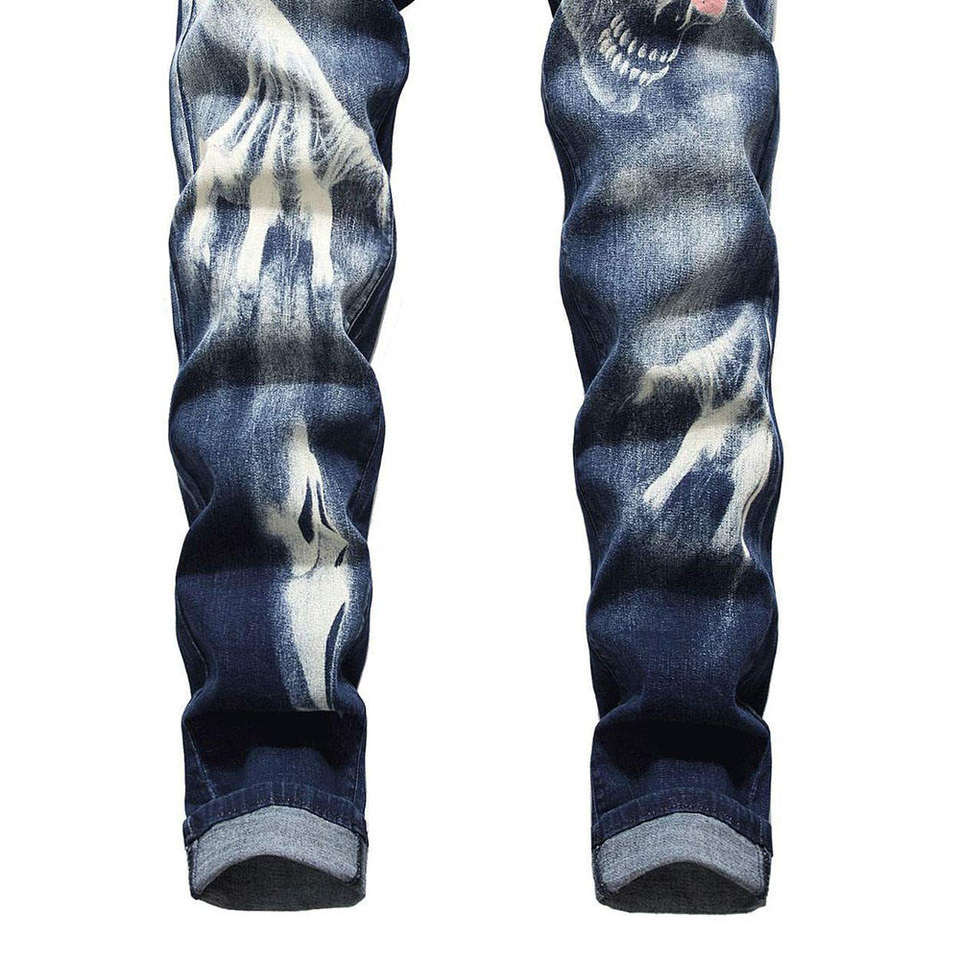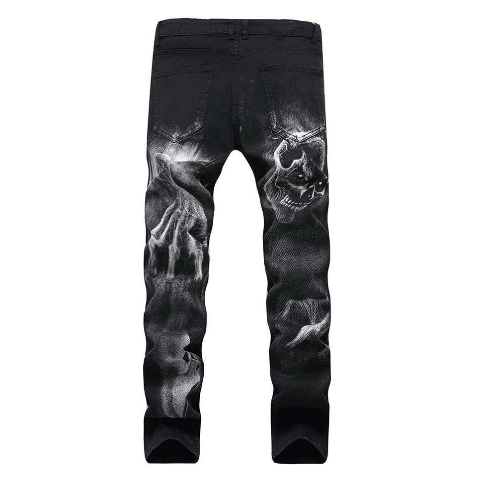 กางเกงยีนส์ทรงสลิมฟิตพิมพ์ลายดิจิทัลสีดำสำหรับผู้ชายสไตล์สตรีทแวร์