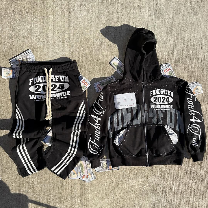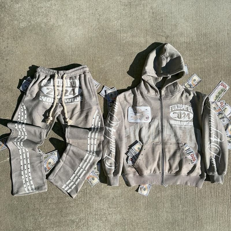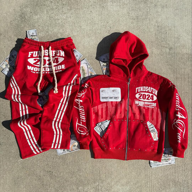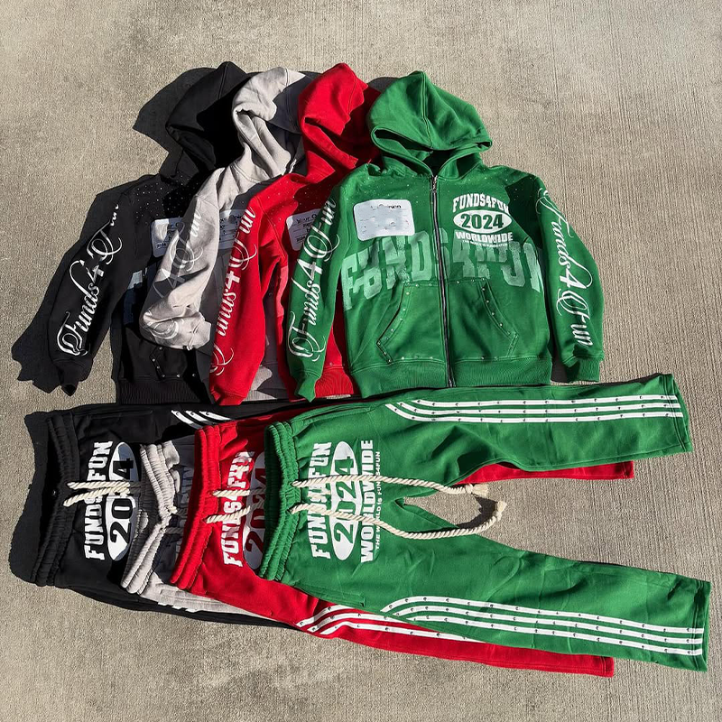 ชุดวอร์มกางเกงวิ่งพร้อมฮู้ดสำหรับผู้ชายชุดวอร์มประดับพลอยเทียม400แกรมแบบกำหนดเอง