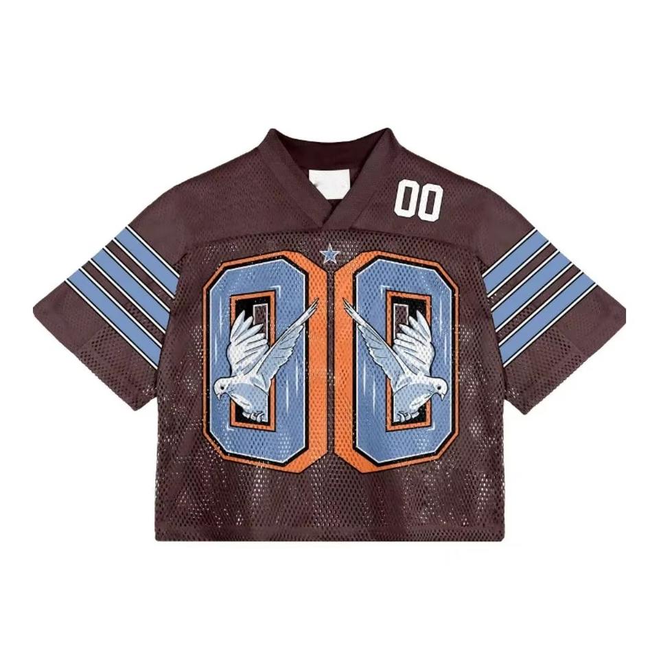 เสื้อเจอร์ซีย์อเมริกันฟุตบอลสตรีทแวร์แบบกำหนดเองได้สำหรับทุกเพศ | เสื้อผ้าตาข่ายพิมพ์ลายระบายอากาศได้ดี ทรงโอเวอร์ไซส์ ไซส์พลัส ทรงบ็อกซี่ รับผลิตแบบ OEM ODM
