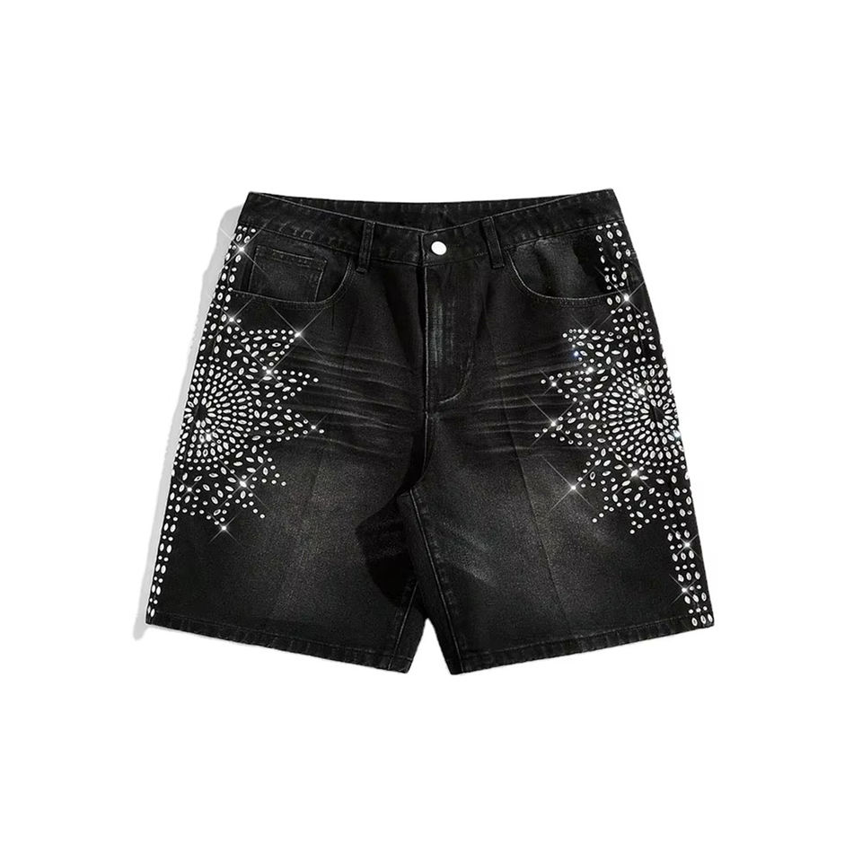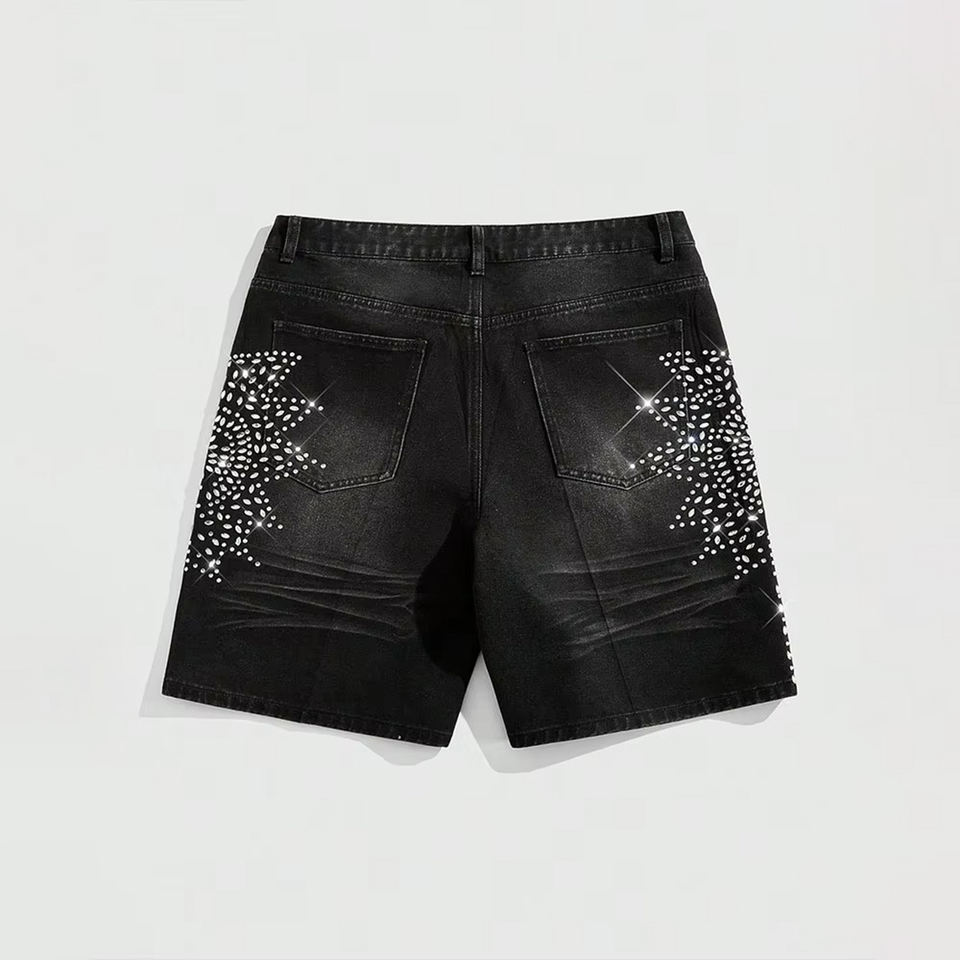 กางเกงขาสั้นยีนส์ประดับพลอยเทียมสำหรับผู้ชาย