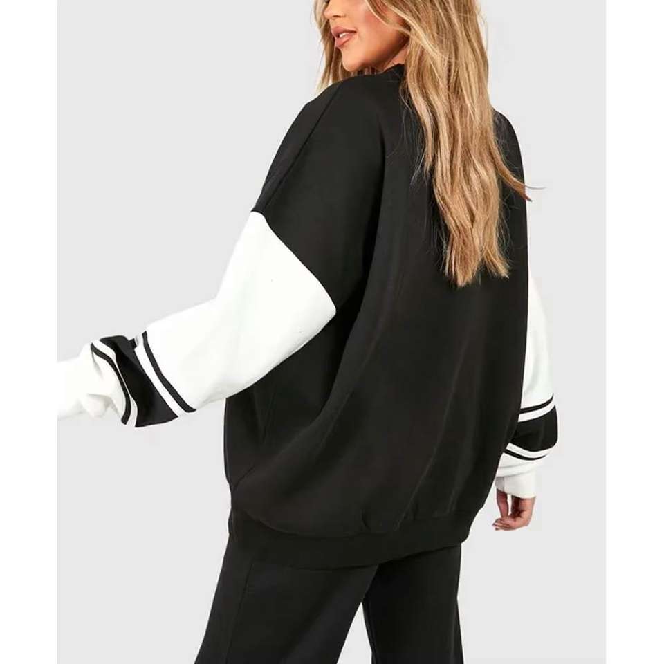 เสื้อสเวตเชิ้ตผู้หญิงแบบสตรีทแวร์สีสันตัดกัน คุณภาพสูง ผ้าฟลีซคอตตอน แขนยาว คอกลม มีฮู้ด
