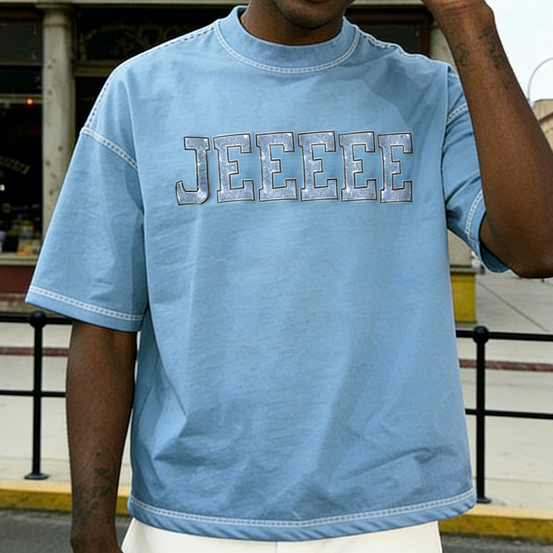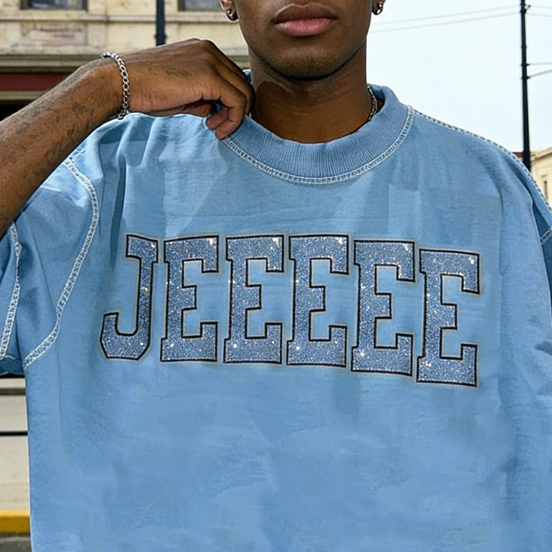 เสื้อยืดคอกลมโอเวอร์ไซส์ทรงบ็อกซี่ผ้าคอตตอนหนานุ่มประดับคริสตัลสำหรับผู้ชาย สไตล์สตรีทแวร์แบบสั่งทำพิเศษ