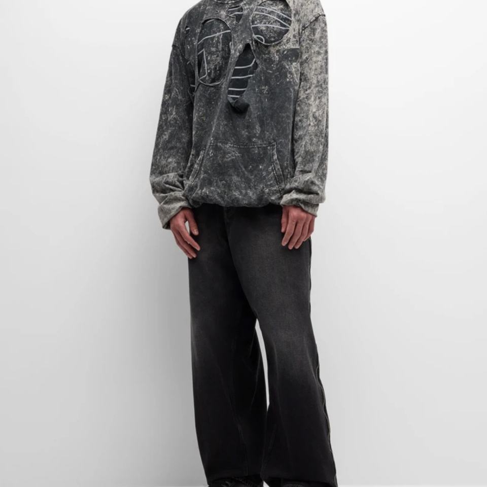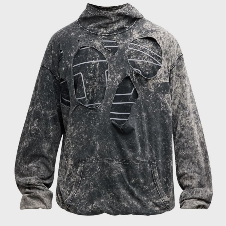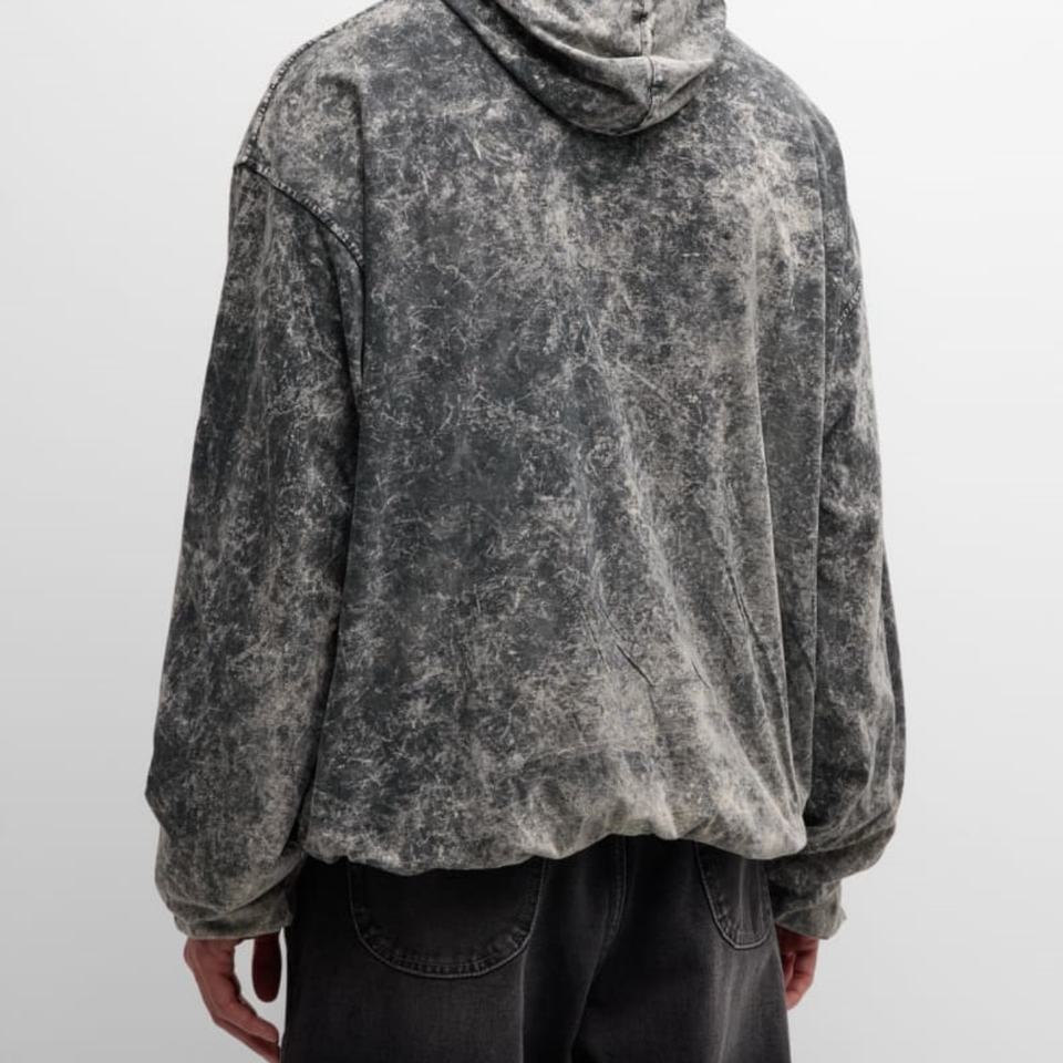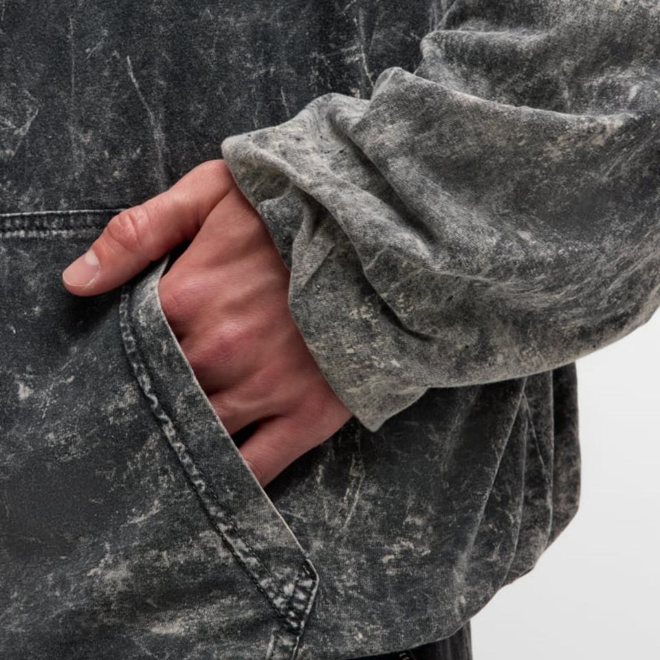 เสื้อฮู้ดดี้ผ้าฝ้ายสไตล์สตรีทแวร์แบบทำสีซีดสองชั้น ยูนิเซ็กส์