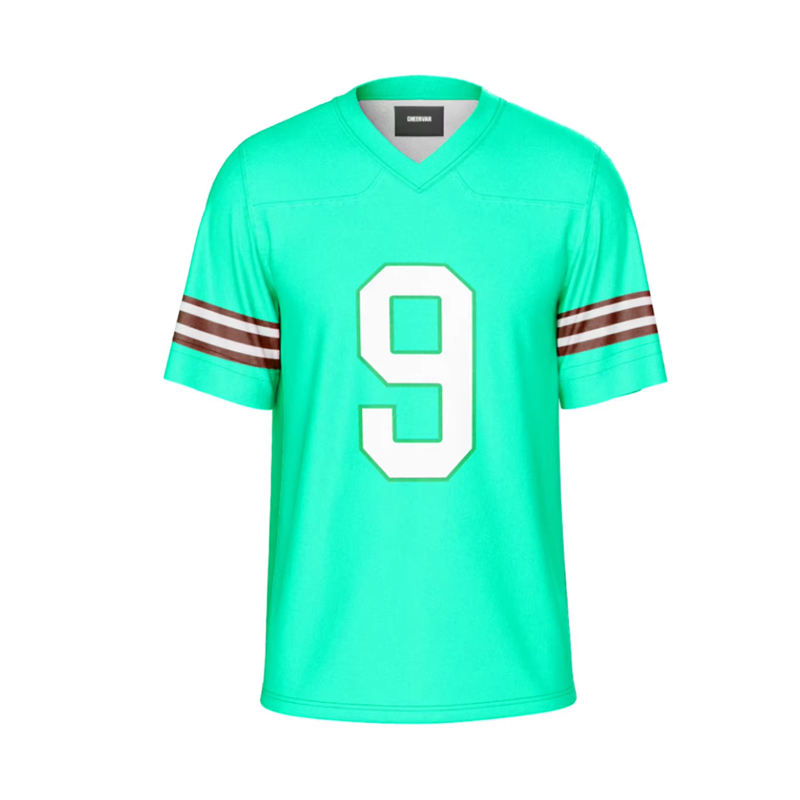 เสื้อเจอร์ซีย์สไตล์อเมริกันฟุตบอลเสื้อพิมพ์ลายสไตล์ใหม่เสื้อกีฬาอเมริกันคอวีออกแบบได้ตามต้องการ