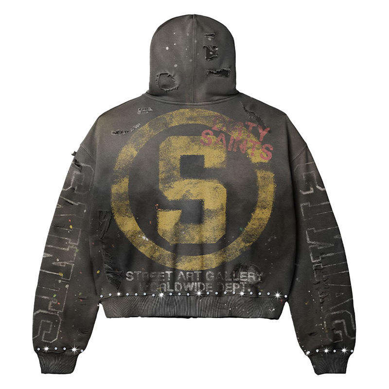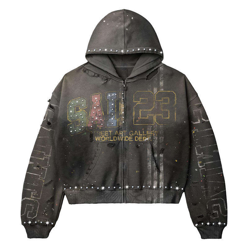 กางเกงวอร์มมีฮู้ดพิมพ์ลาย Dtg ประดับพลอยเทียมสีโทนแสงแดดซีดตามสั่ง
