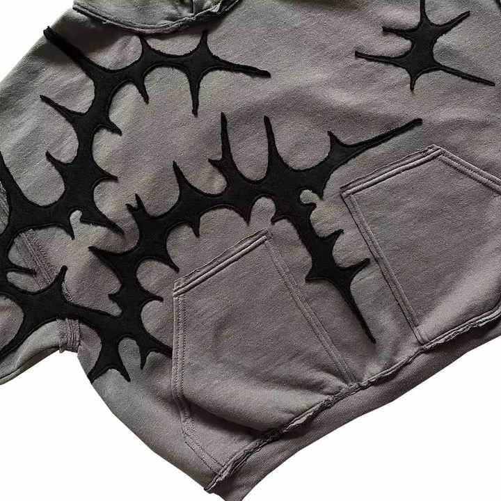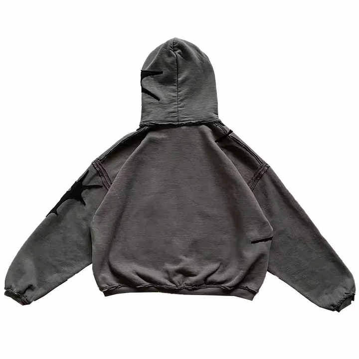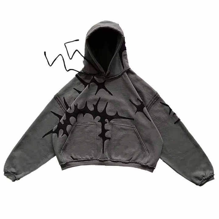 เสื้อผ้าสตรีทแวร์แบบสั่งทำพิเศษ ซิปคู่ 3 จุด ล้างสีแบบแอซิดวอช ทรงวินเทจ ทรงหลวม ทรงบ็อกซี่ แต่งดีเทลขาดๆ ประดับคริสตัล 3 ชั้น