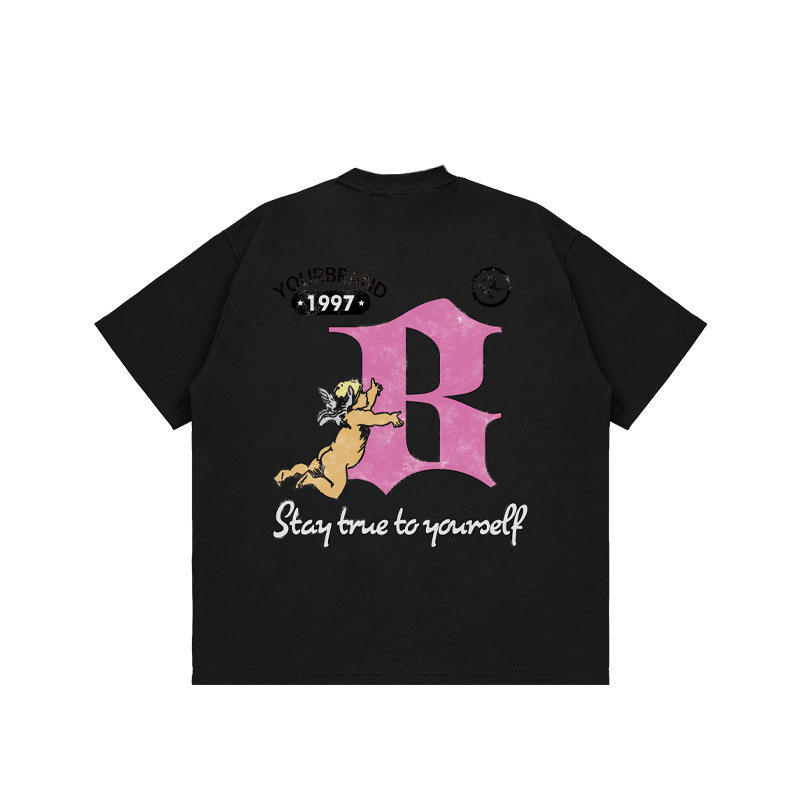เสื้อยืดผู้ชายคุณภาพสูงแนวสตรีทแวร์เสื้อยืดแขนสั้นโฟมตัวอักษรสามมิติสำหรับผู้ชาย