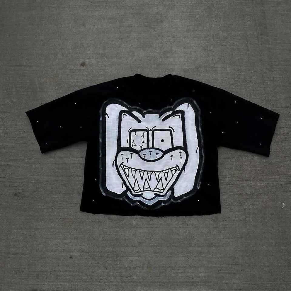 เสื้อยืดสตรีทแวร์ผู้ชาย ผ้าคอตตอนหนานุ่ม สไตล์วินเทจ ล้างสีแบบแอซิด ฟอกสีซีด ขอบดิบ ทรงฮิปฮอป ตัดสั้น