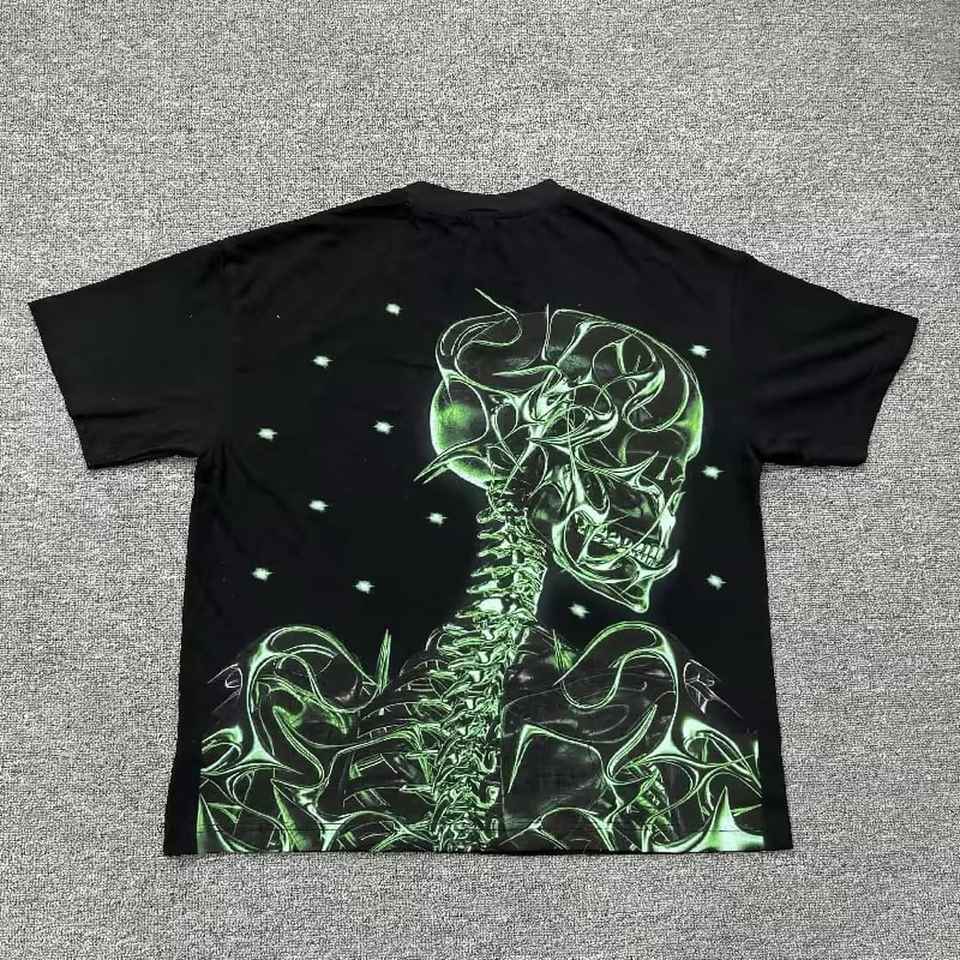 เสื้อยืดสตรีทแวร์ผู้ชาย ผ้าคอตตอนหนานุ่ม สไตล์วินเทจ ล้างสีแบบแอซิด ฟอกสีซีด ขอบดิบ ทรงฮิปฮอป ตัดสั้น