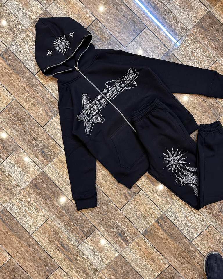 ชุดเซ็ตแทรคสูทสตรีทแวร์ผู้ชาย ผ้าฝ้ายพรีเมียม เสื้อฮู้ดดี้และกางเกงขายาว ส่งตรงจากโรงงาน