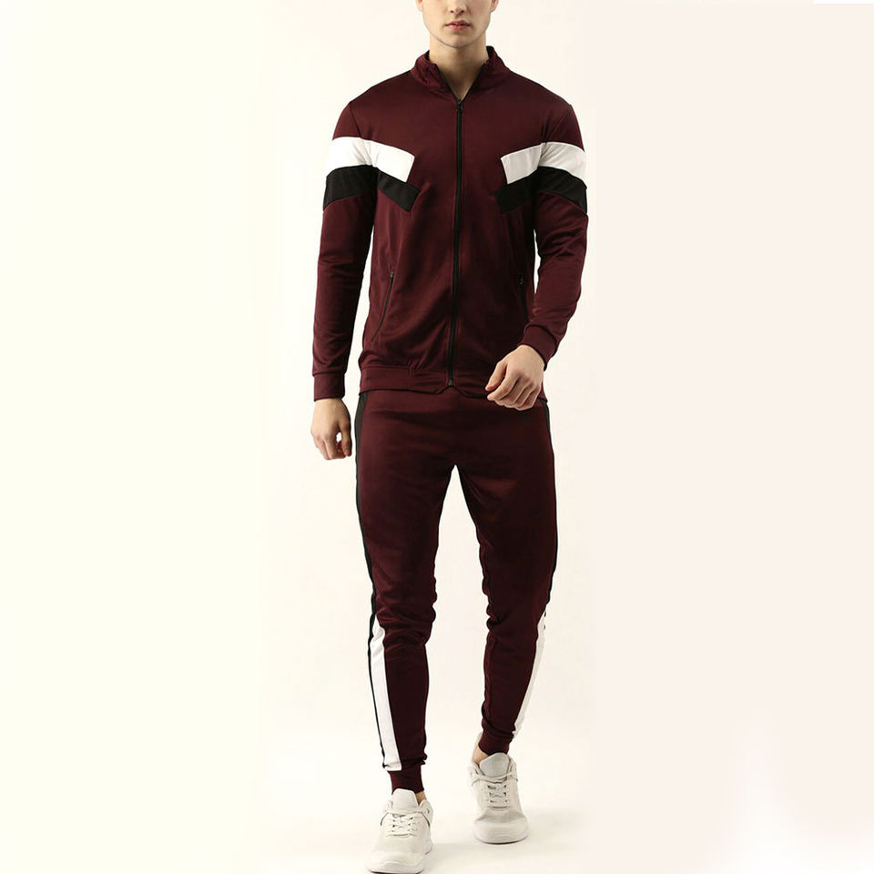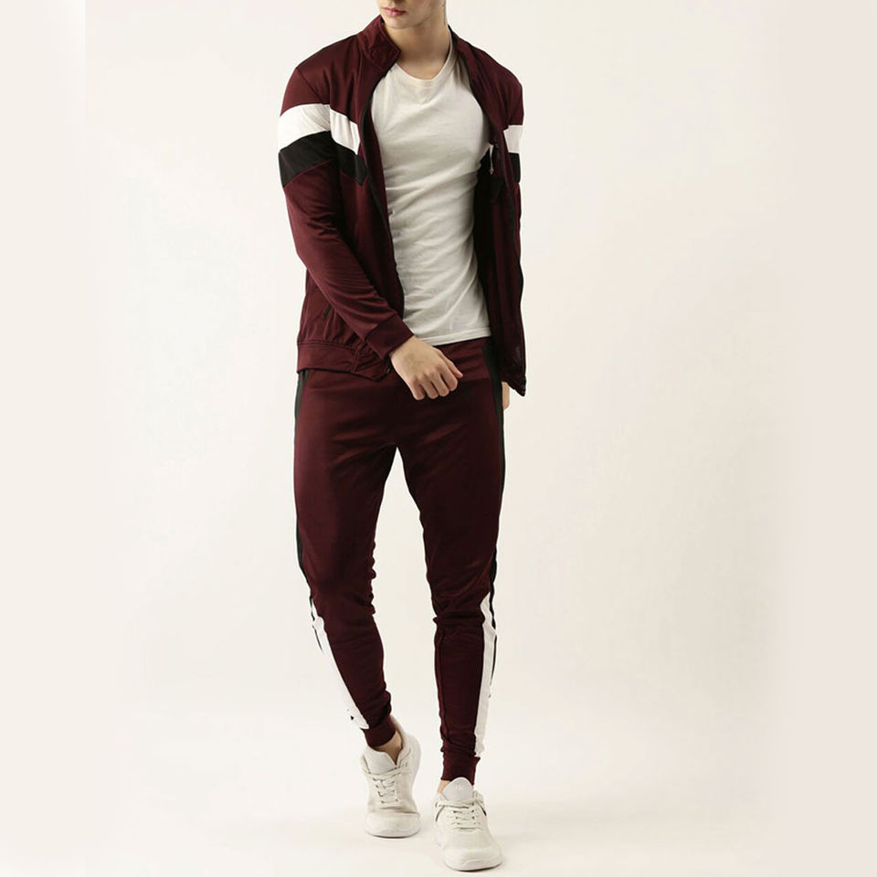 ชุดแทรคสูทลำลองสไตล์สตรีทแวร์สำหรับผู้ชาย ชุดออกกำลังกายแบบ 2 ชิ้น เสื้อแจ็คเก็ตมีซิปและกางเกงขายาว ชุดออกกำลังกายและวิ่ง