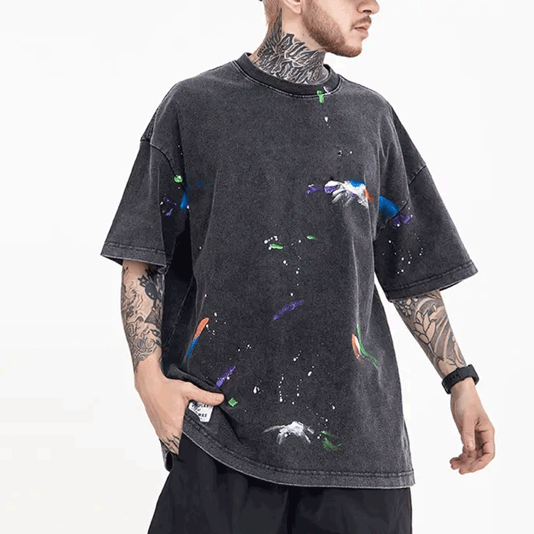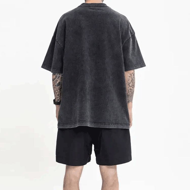Custom Streetwear Men's Short Sleeve T-shirts Washed 100% Cotton Heavyweight Vintage T Shirt