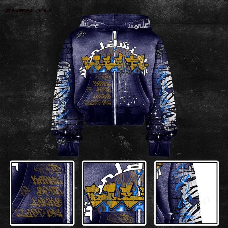 วินเทจ, สบายๆ, สตรีท, บ็อกซี่, Y2K, High Street, ยูนิเซ็กส์, ซิปขึ้นสไตล์