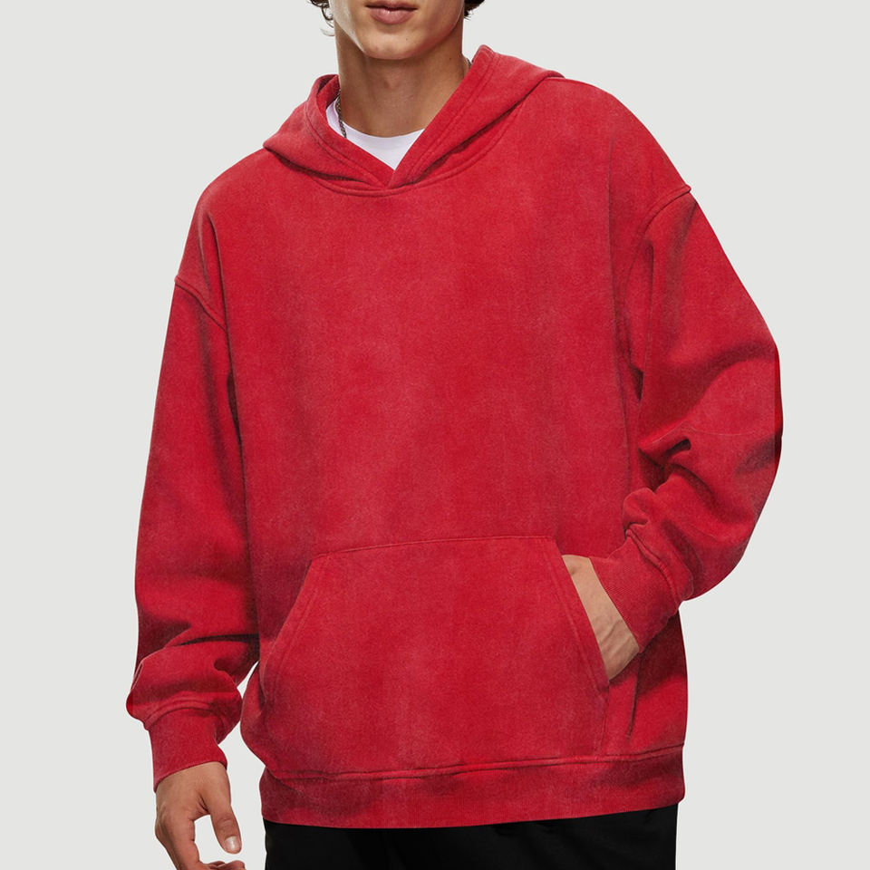 เสื้อฮู้ดสตรีทแวร์ทรงโอเวอร์ไซส์แบบทำสีซีดสไตล์วินเทจสำหรับผู้ชาย ขายออนไลน์