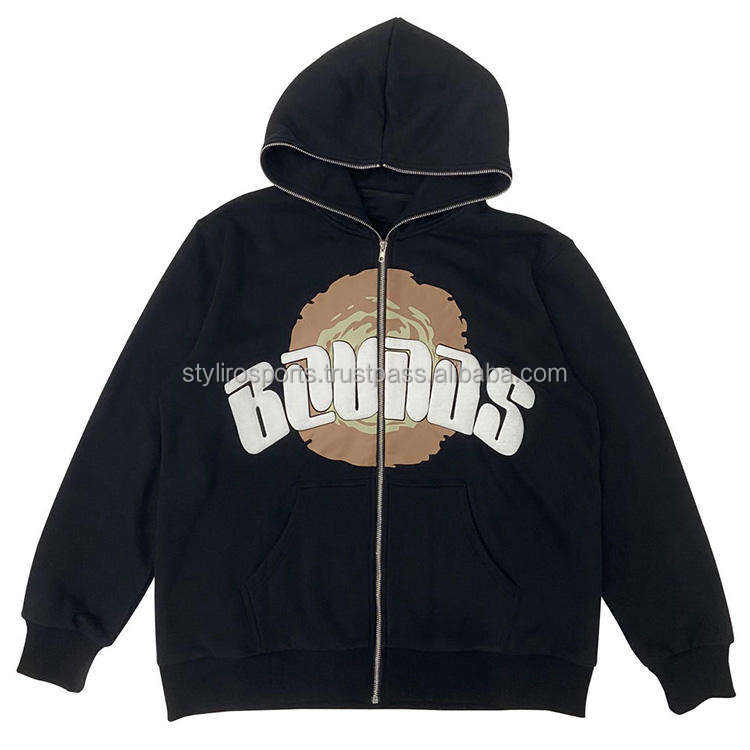 เสื้อฮู้ดดี้สตรีทแวร์ทรงโอเวอร์ไซส์ ผ้าหนานุ่ม ซิปยาวเต็มตัว ผ้าฝ้าย/โพลีเอสเตอร์ เฟรนช์เทอร์รี่ สำหรับผู้ชาย ฤดูหนาว ผ้าหนัก 360 กรัม