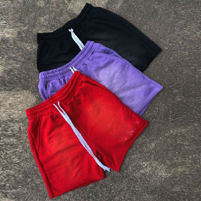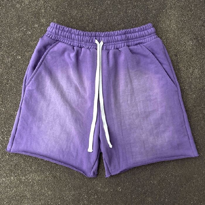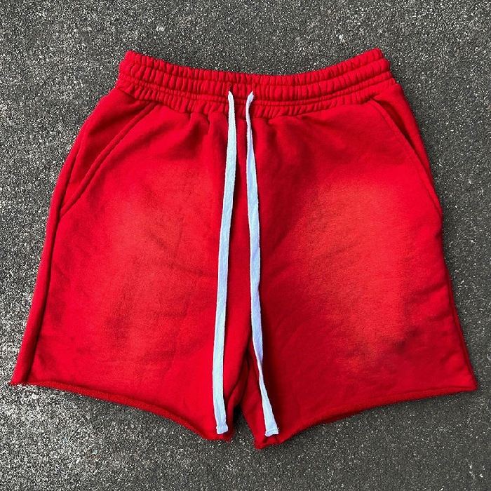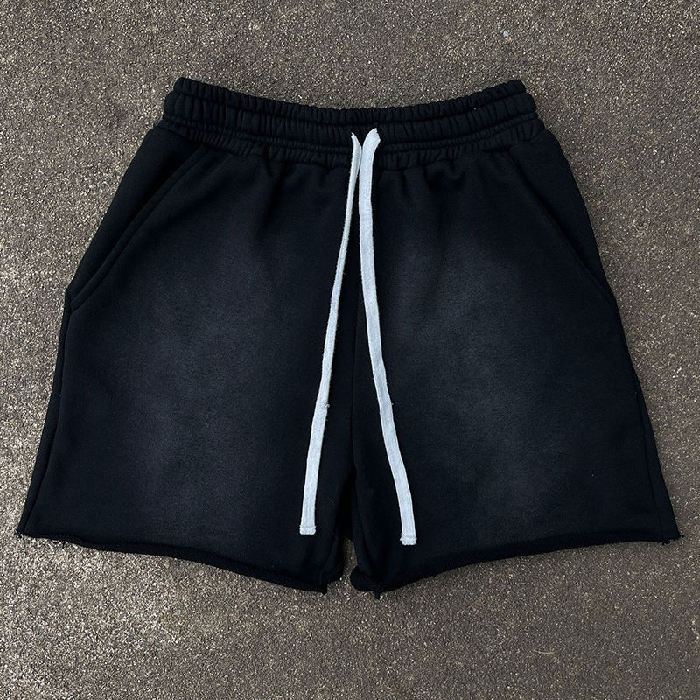 กางเกงขาสั้นผ้าฝ้ายเทอร์รี่ฟอกสีกรดแนววินเทจสำหรับผู้ชายกางเกงวิ่งสไตล์สตรีทแวร์ทรงหลวมใส่ฤดูร้อน