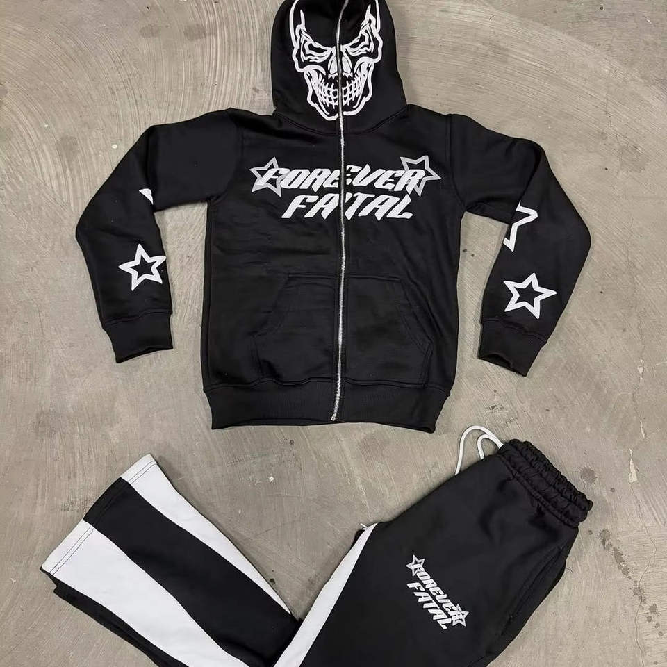 ชุดวอร์มสตรีทแวร์ฤดูหนาวแบบกำหนดเองสำหรับผู้ชาย ทรงเข้ารูป ผ้าคอตตอนหนานุ่ม ซิปเต็มตัว เสื้อฮู้ดและกางเกงขายาวแบบ 2-in-1