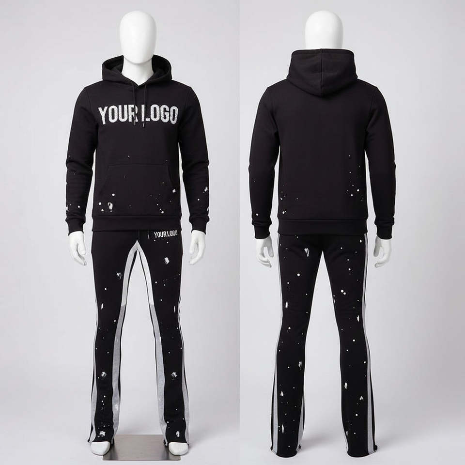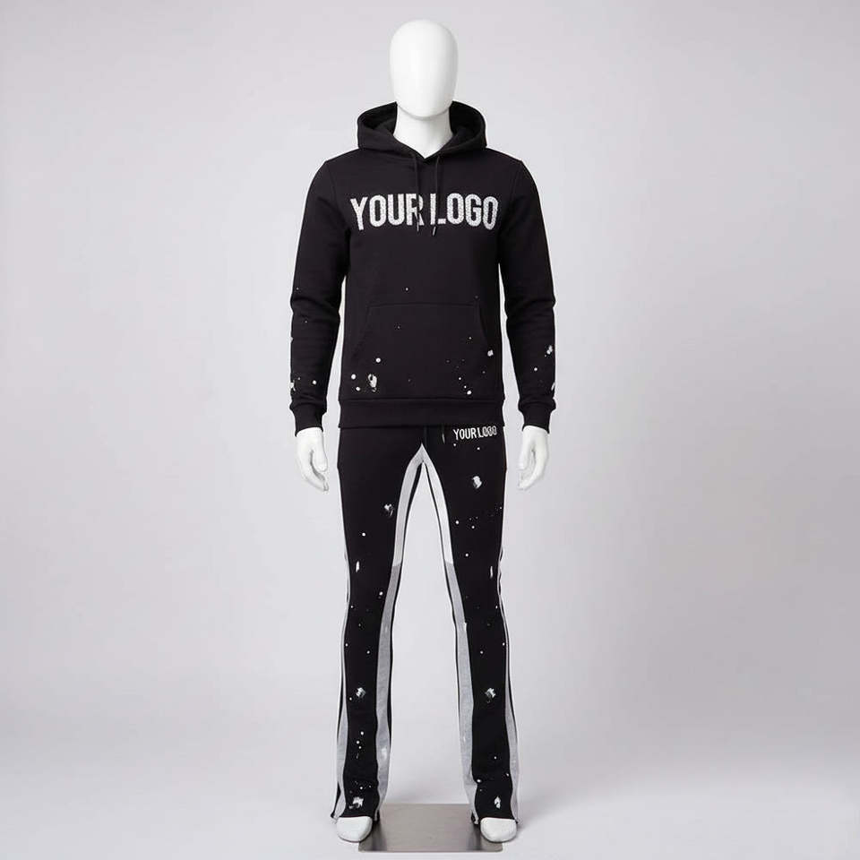 Custom Streetwear Tracksuit High Quality Flare Sweat Pants Solid Casual Unisex Hoodie Stacked Jogger Set Men 100% Cotton