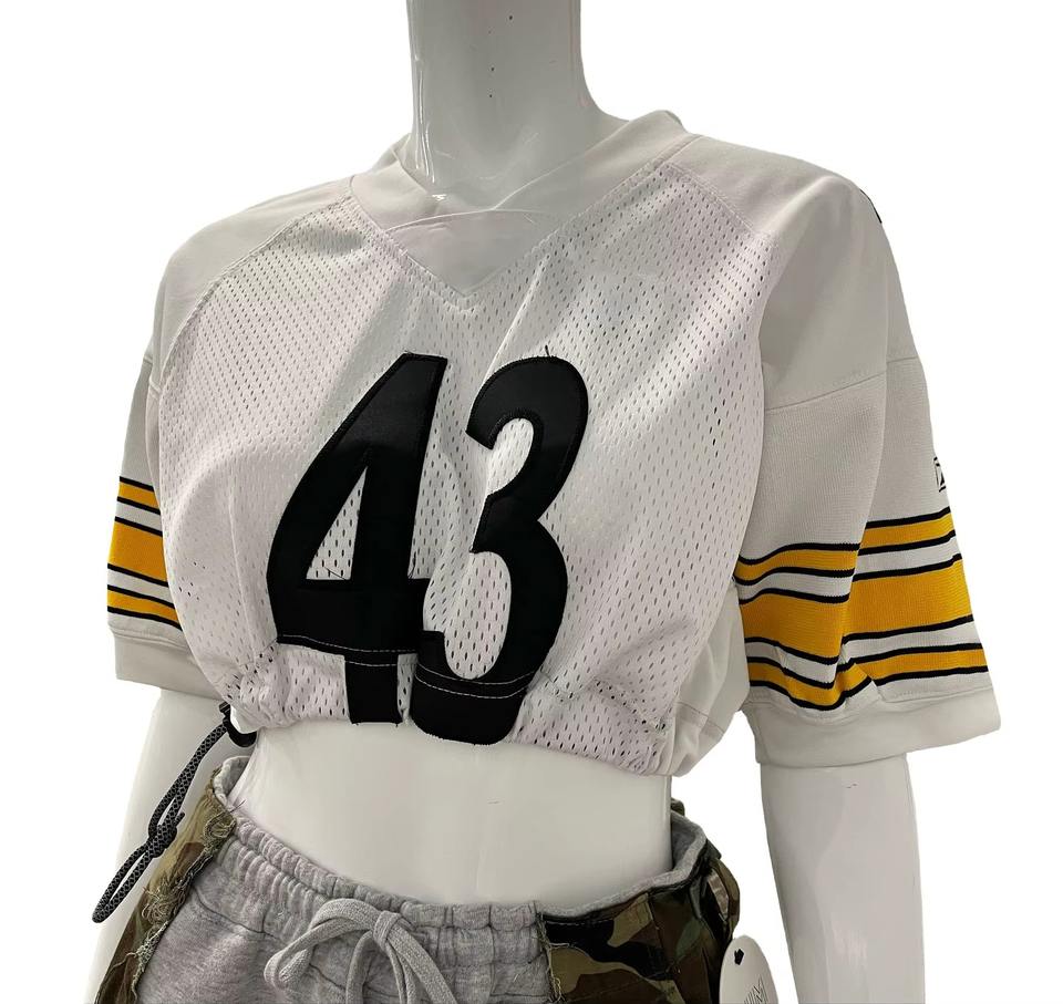 เสื้อฟุตบอลสตรีทแวร์แฟชั่นโอเวอร์ไซส์สไตล์วินเทจผ้าเจอร์ซีย์ตาข่ายแบบครอปสไตล์อเมริกัน
