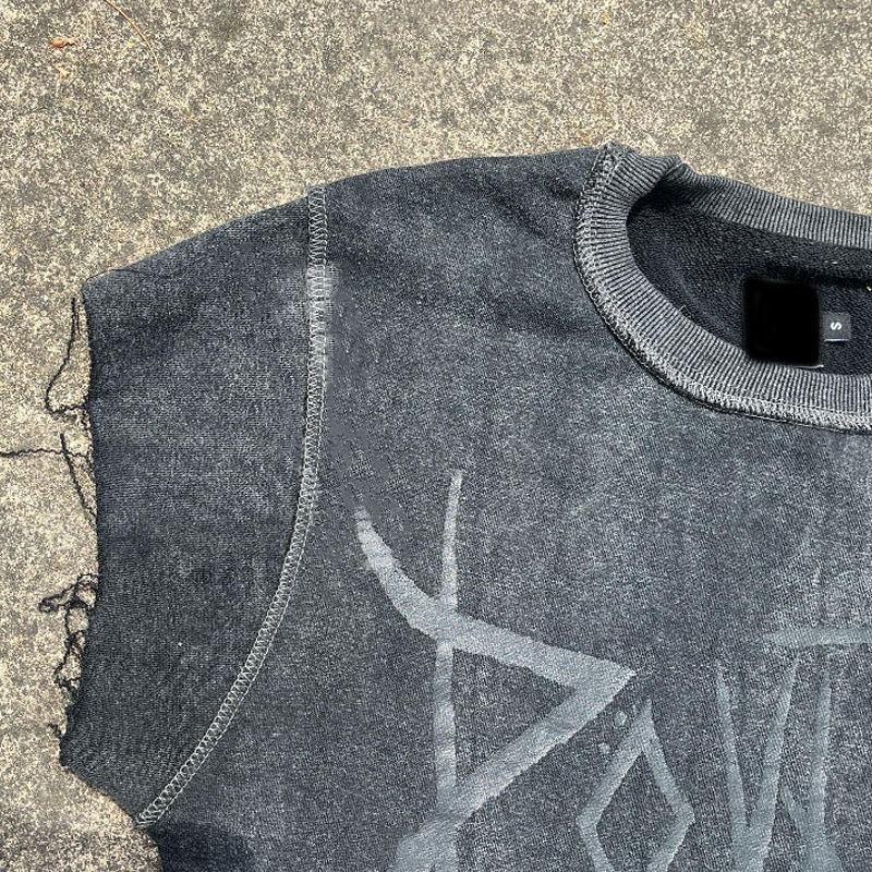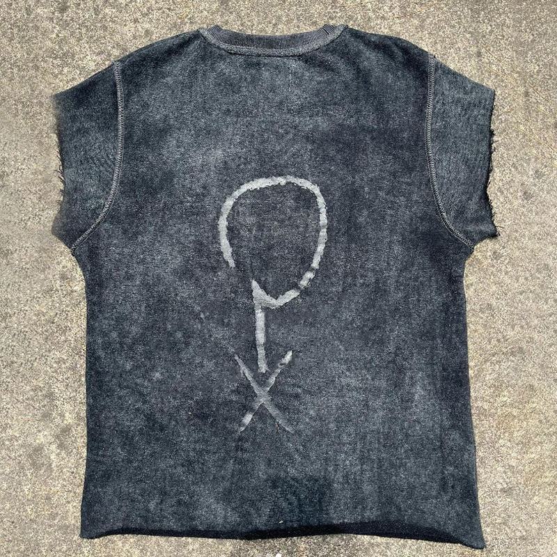 คีย์เวิร์ด:เสื้อยืดวินเทจแขนกุดซักกรดทรงหลวมผู้ชาย