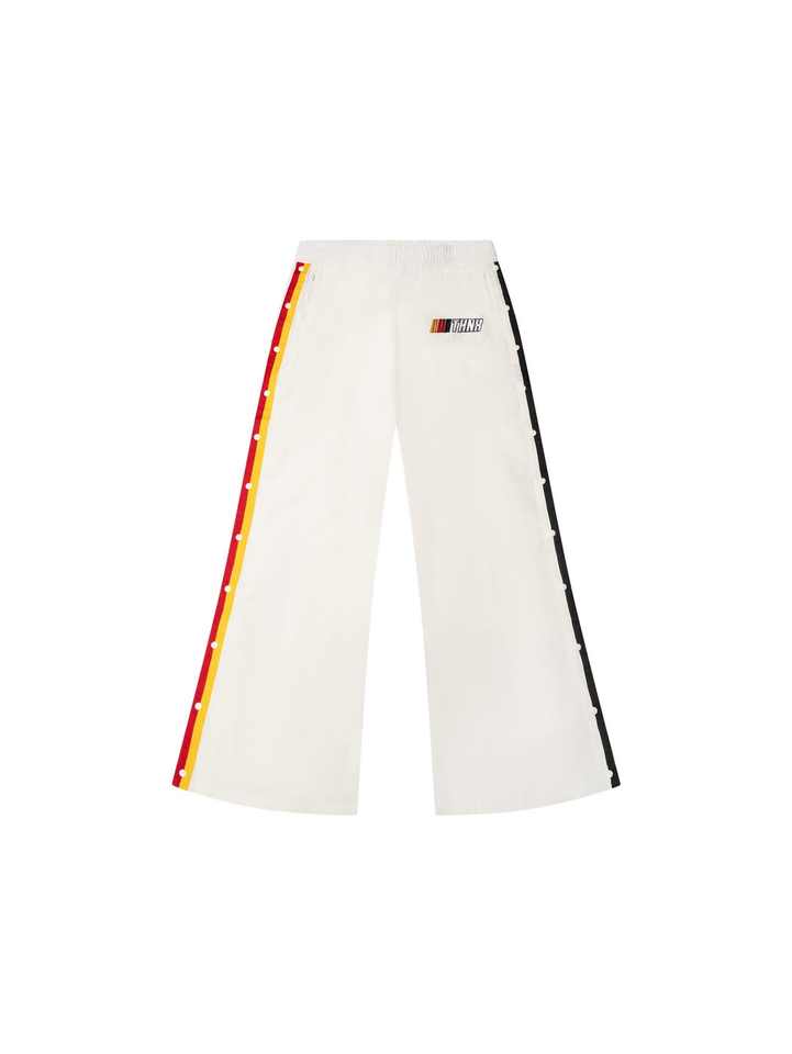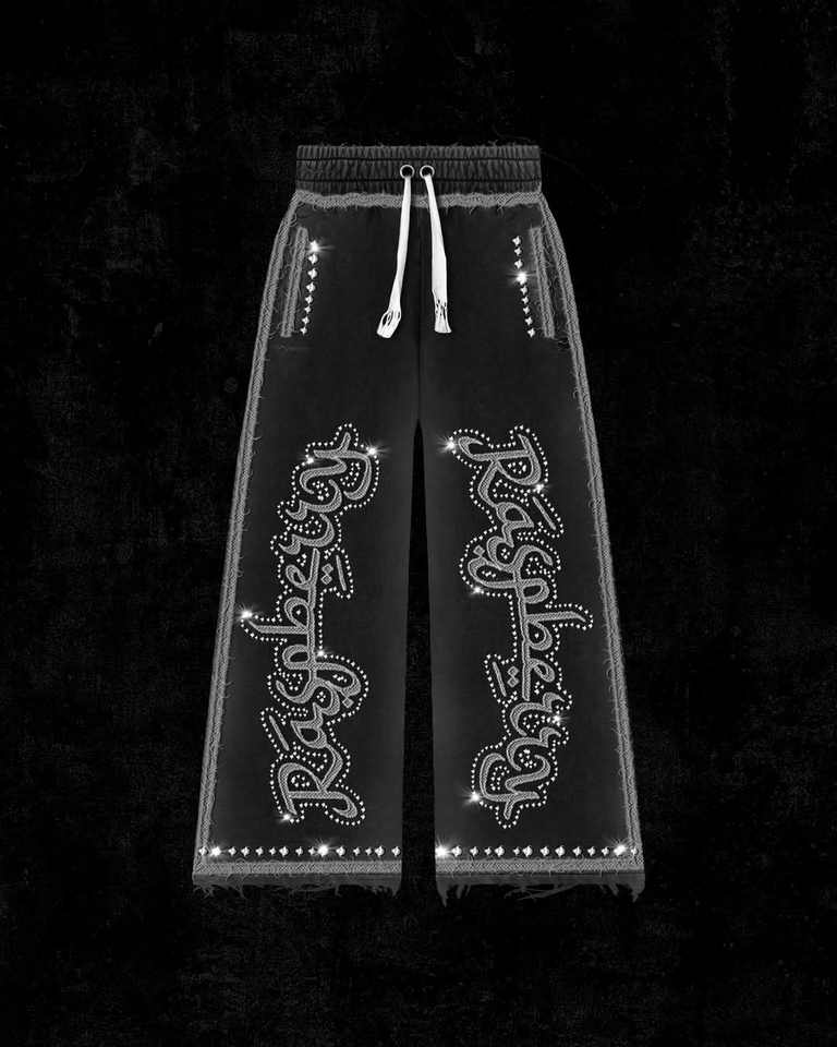 กางเกงวินเทจสไตล์สตรีทแวร์ประดับเพชรลายทาง กางเกงลายทางฟอกสีซีดแบบย้อนยุค กางเกงวอร์มทรงสปอร์ตขาบาน