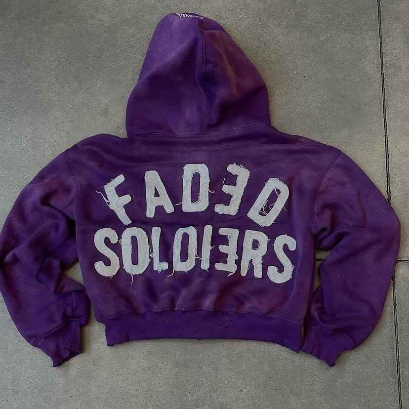 เสื้อฮู้ดแบบซิปไม่มีสายผ้าฟลีซสำหรับฤดูหนาววินเทจคุณภาพสูงซักกรดสองชั้นฟอกสีแดดจางหายไป