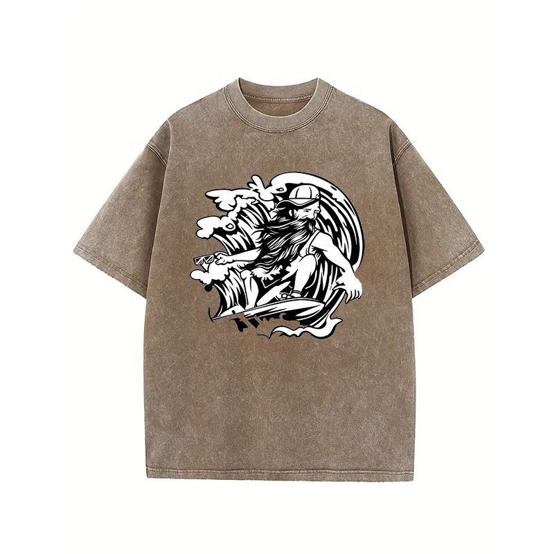เสื้อยืดสตรีทแวร์สไตล์ Y2K ผ้าฝ้าย 100% หนานุ่ม ซักย้อมสีแบบวินเทจ พิมพ์ลายกราฟิกด้วยเทคนิค DTG ทรงโอเวอร์ไซส์ น้ำหนัก 240gsm คอกลม
