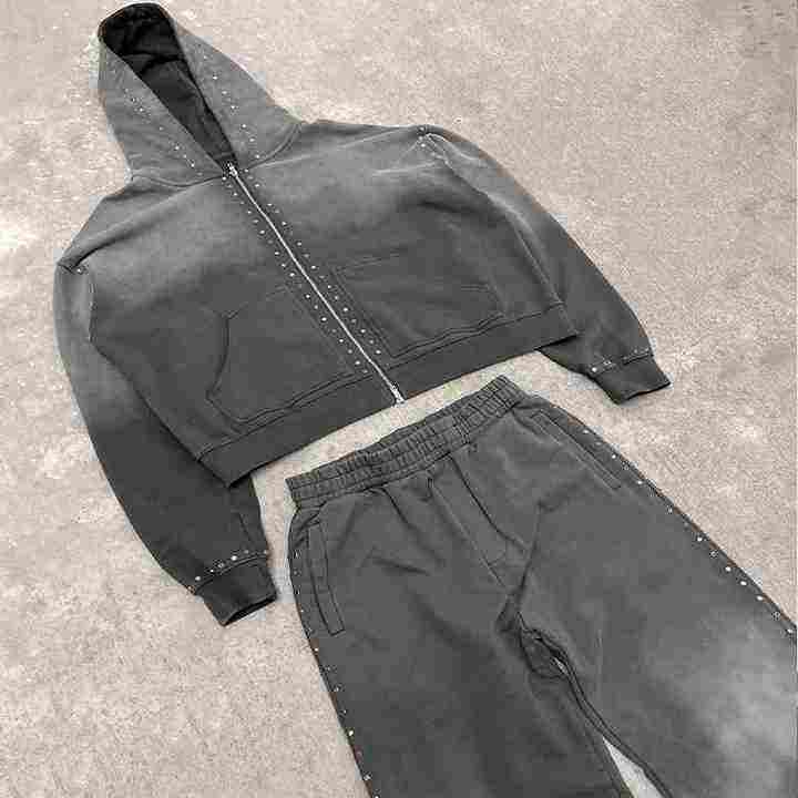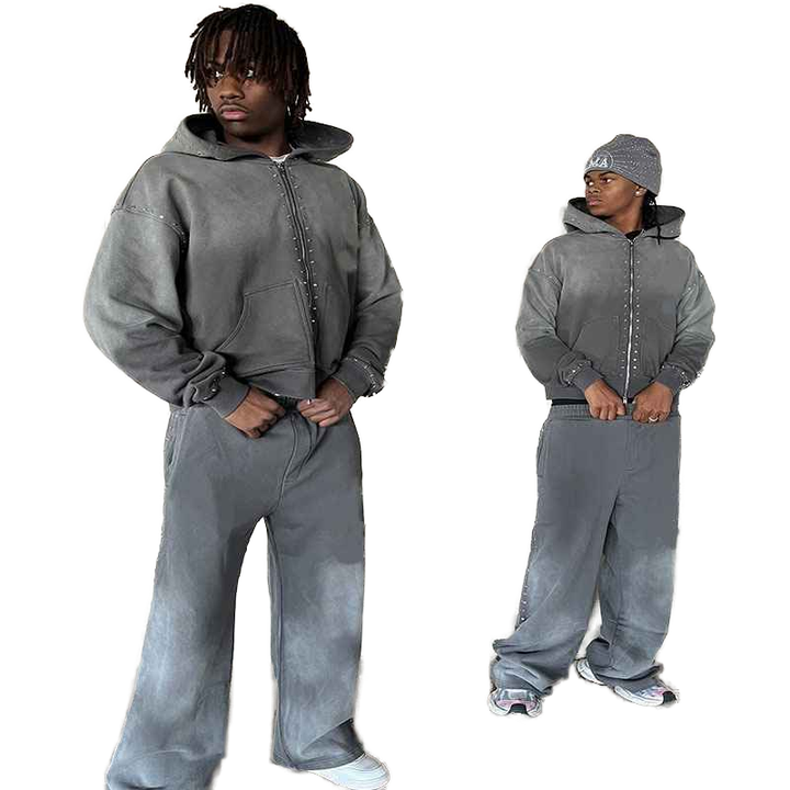 Custom Streetwear Y2k Track Suit Men Zip up Satin Lined Y2k Tracksuit Clothing Wash Vintage Sweatpants and Hoodie Sets