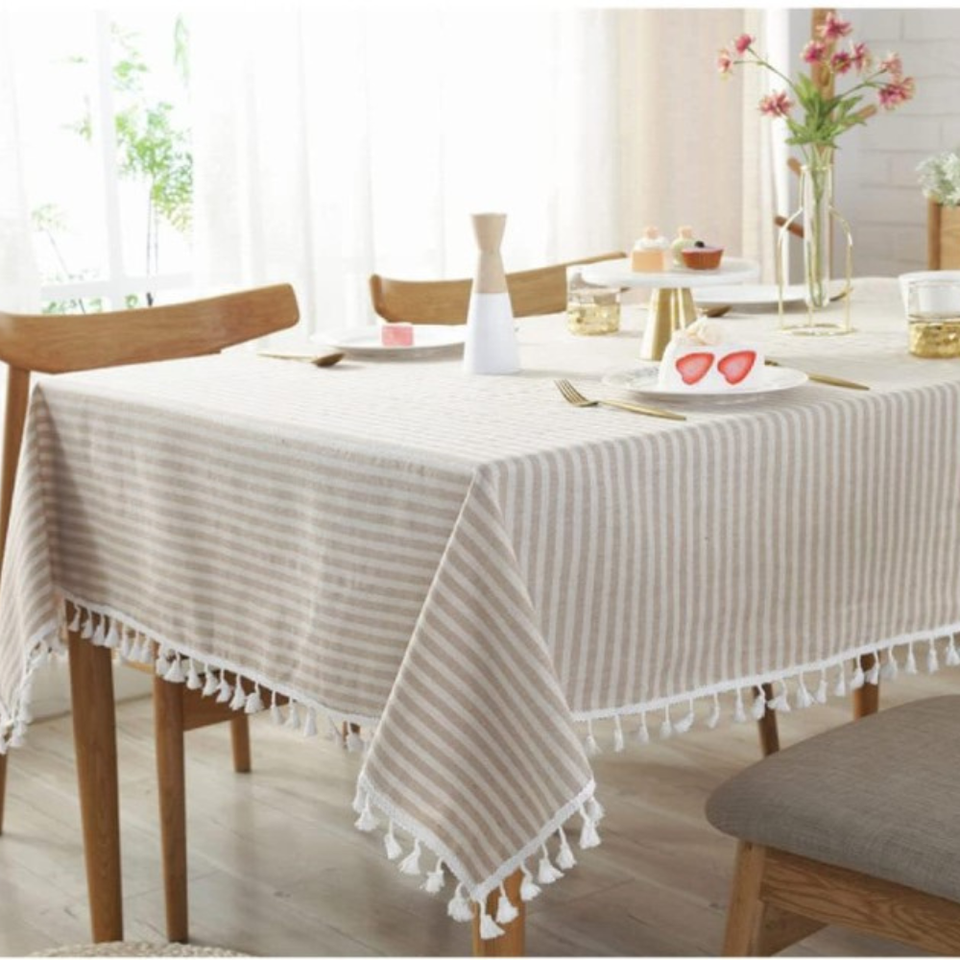 ผ้าปูโต๊ะผ้าลินินสี่เหลี่ยมลายทางผ้าลินินธรรมชาติ100% เป็นมิตรกับสิ่งแวดล้อมผ้าคลุมโต๊ะอาหารในร้านอาหารกำหนดขนาดและโลโก้ได้ตามต้องการ