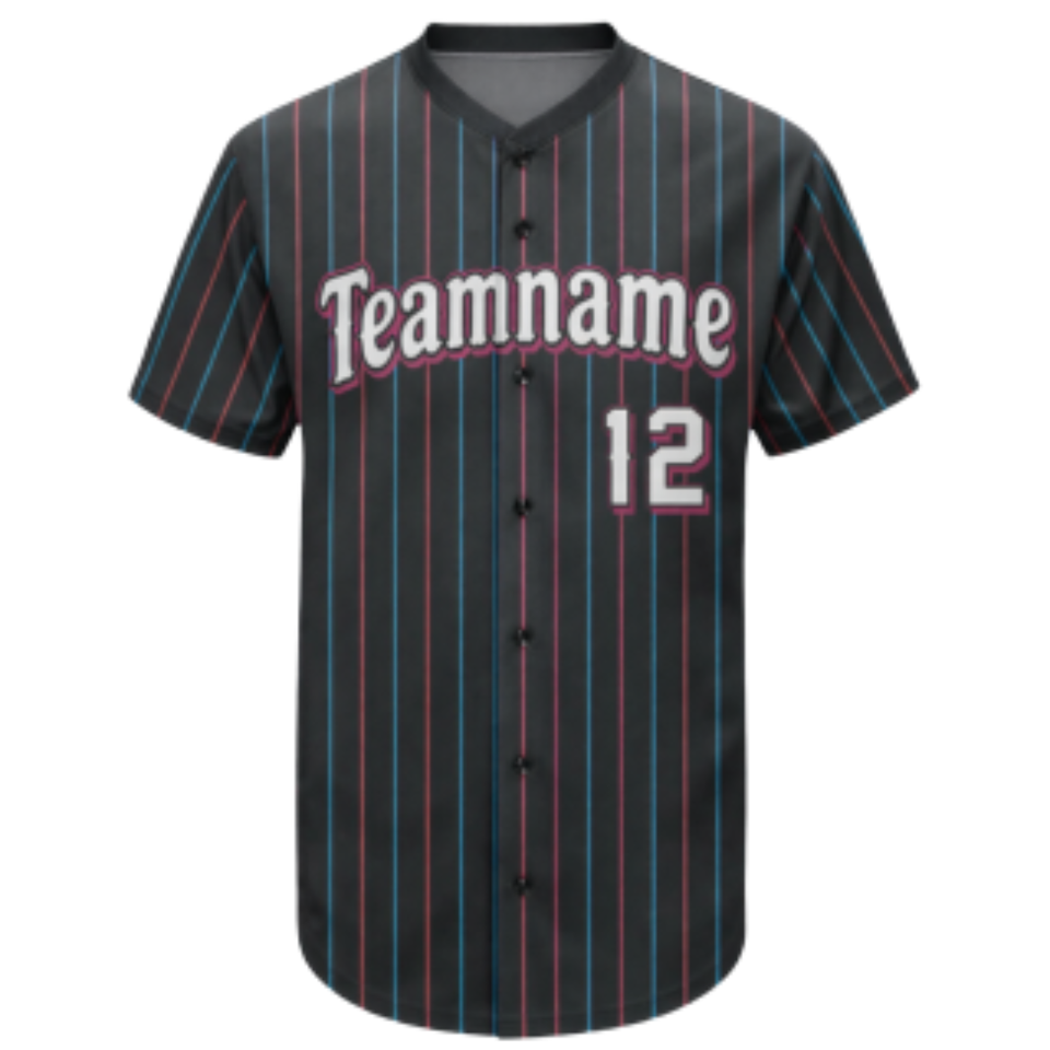 เสื้อเบสบอลลายทางแบบสั่งทำพิเศษ ดีไซน์ติดกระดุม สีสันสดใส หมายเลขผู้เล่นและสีทีมแบบกำหนดเอง สำหรับชุดกีฬาผู้ชาย