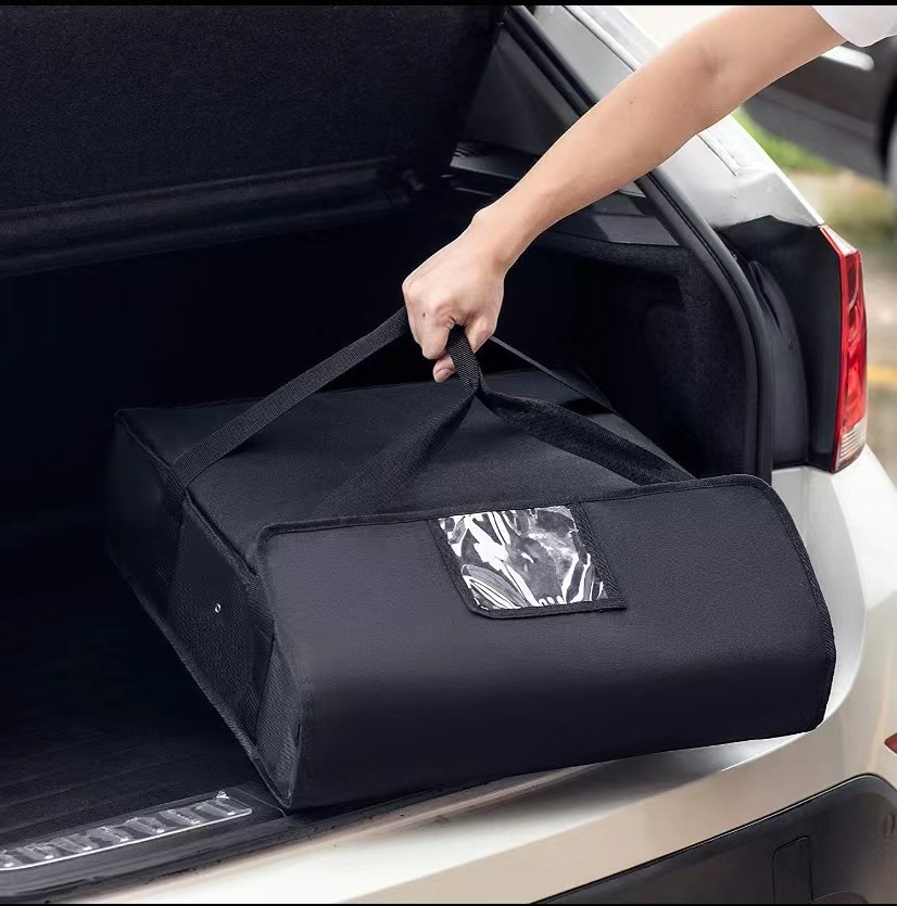 กระเป๋าเก็บความร้อนแบบมีแถบลายผ้าอ๊อกซ์ฟอร์ดสำหรับส่งพิซซ่า