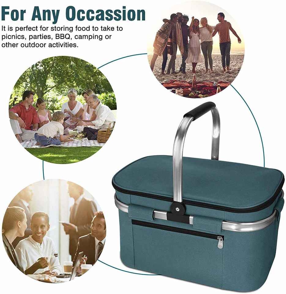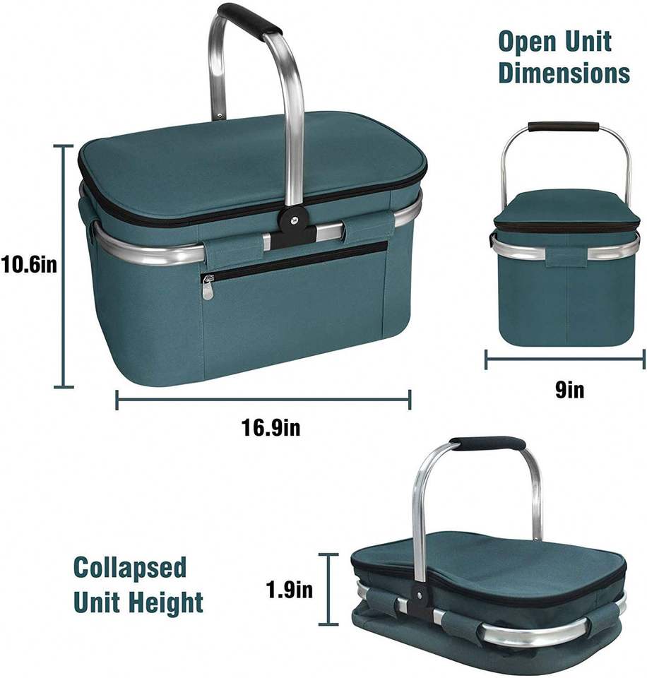 กระเป๋าเก็บความเย็นแบบมีลายทาง ทำจากโพลีเอสเตอร์ พร้อมชุดอุปกรณ์ปิกนิกและกระเป๋าเก็บความเย็นแบบพกพา ป้องกันการรั่วซึมและพับเก็บได้