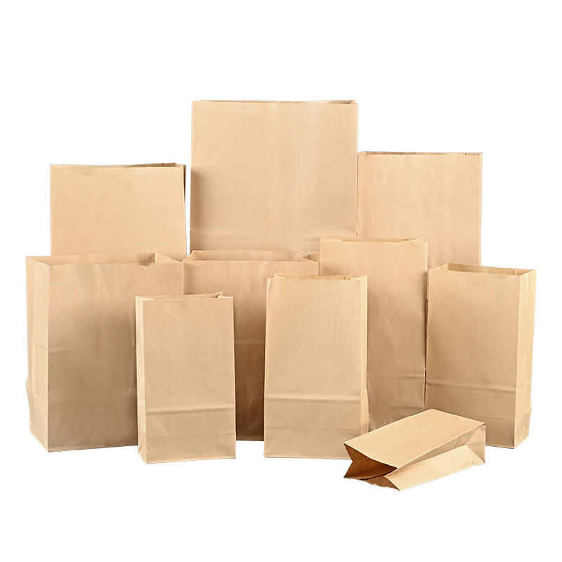 ถุงกระดาษคราฟท์ทรงสี่เหลี่ยมแบบคลาสสิกแข็งแรงพิเศษ สำหรับอาหาร แชมเปญ ขนมปัง พิมพ์ออฟเซ็ต ปิดผนึกด้วยกาวในตัว ขายส่งบรรจุภัณฑ์