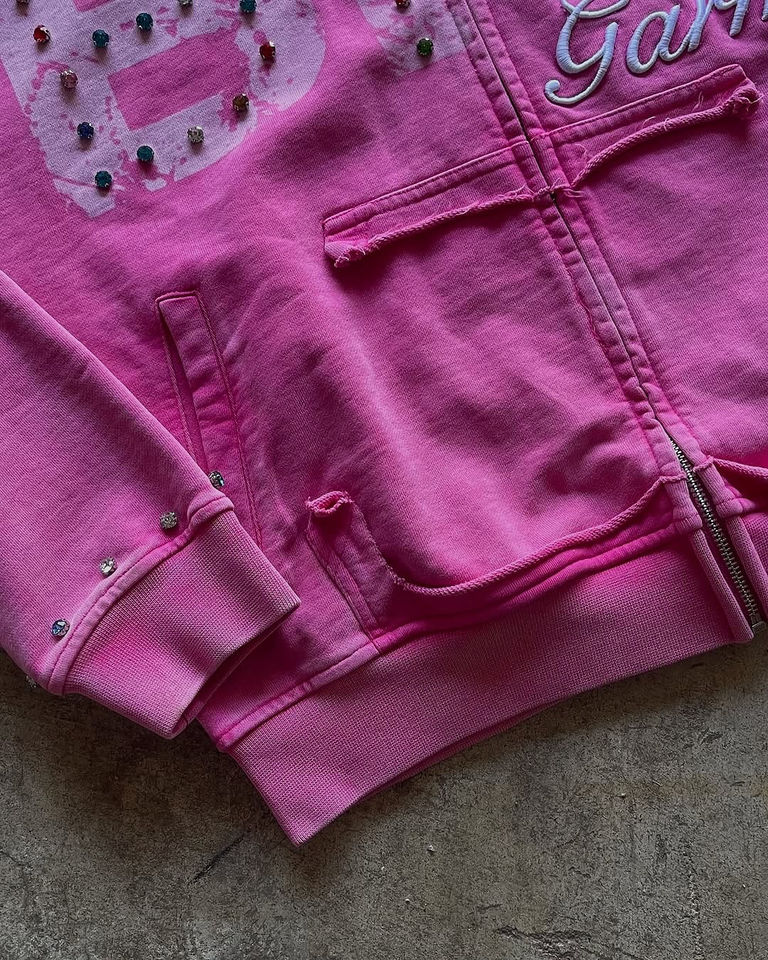 เสื้อมีฮู้ดสำหรับผู้ชายกระดุมพลอยเทียมมีลายพิมพ์ DTG มีฮู้ดสำหรับล้างหินมีช่องซิปรูด500gsm