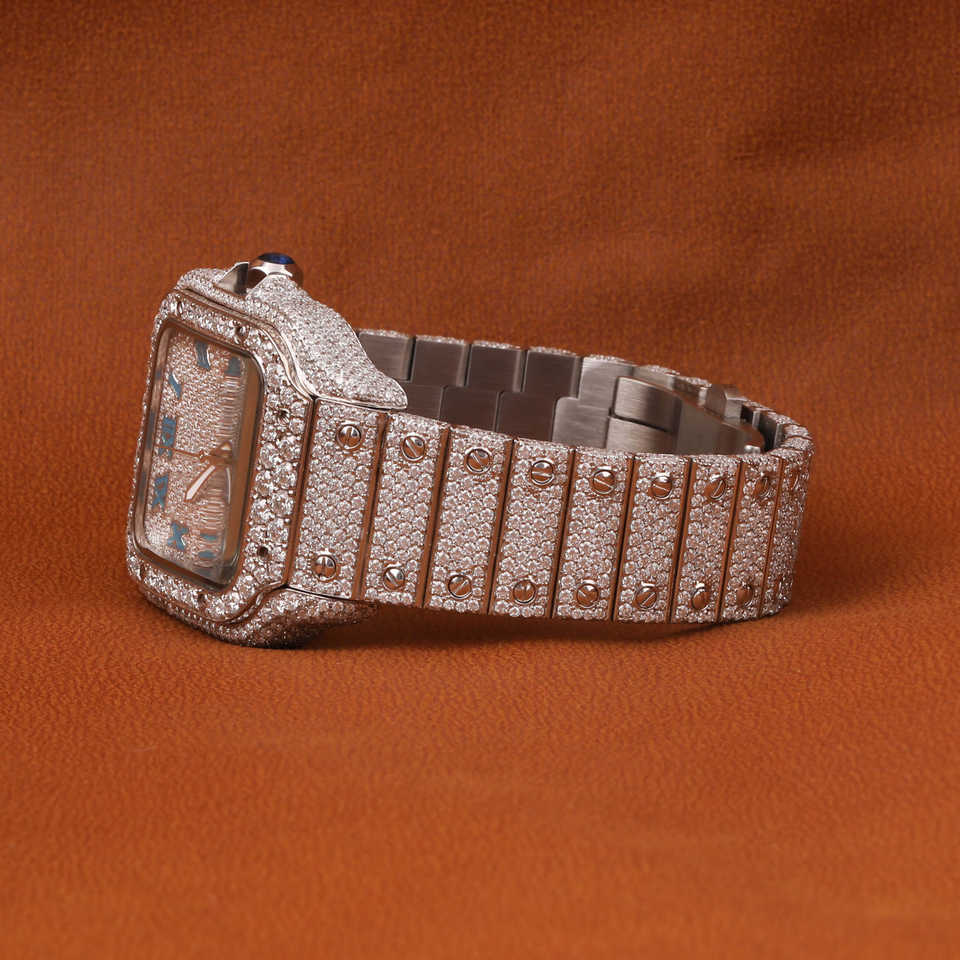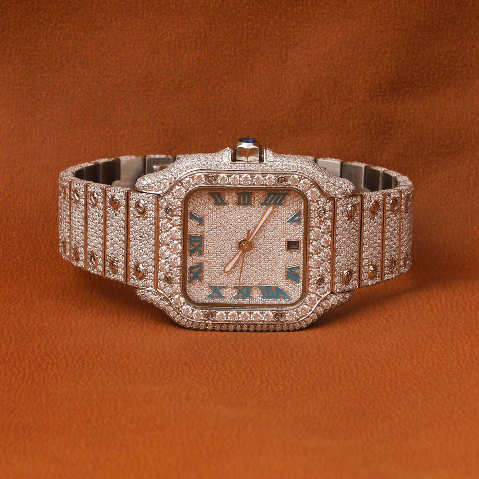 นาฬิกาเพชรโมอิสทรงกลมหน้าปัดวันที่คลาสสิกและตัวเลขโรมันท้องฟ้าสีฟ้าออกแบบได้ตามต้องการ