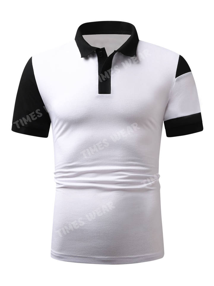 เสื้อโปโลแขนสั้นสำหรับผู้ชาย,เสื้อปะติดลายบล็อกสีลำลองสไตล์ที่ออกแบบได้ตามต้องการ